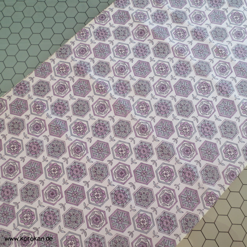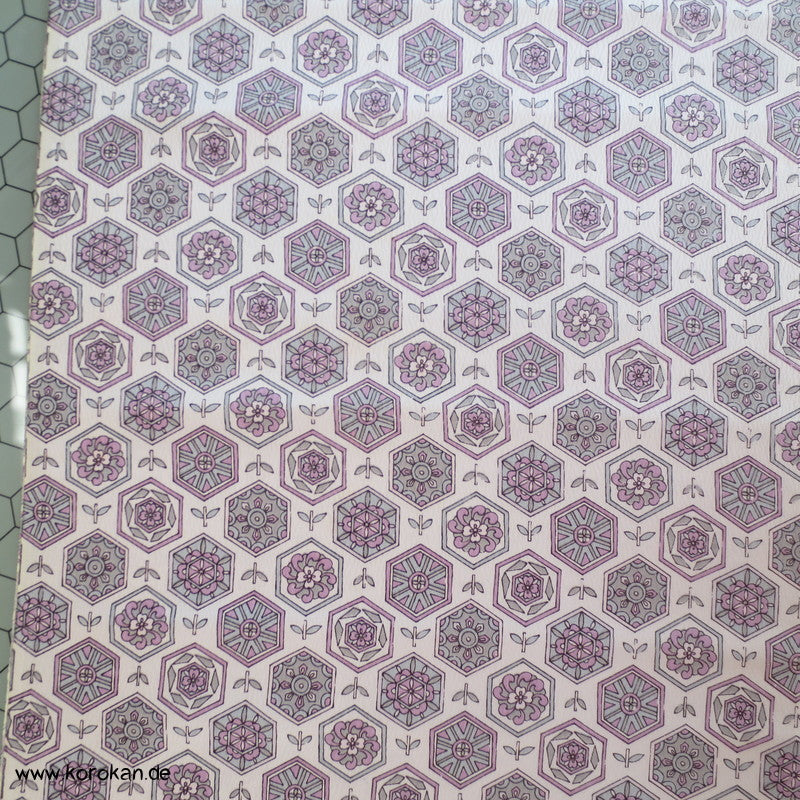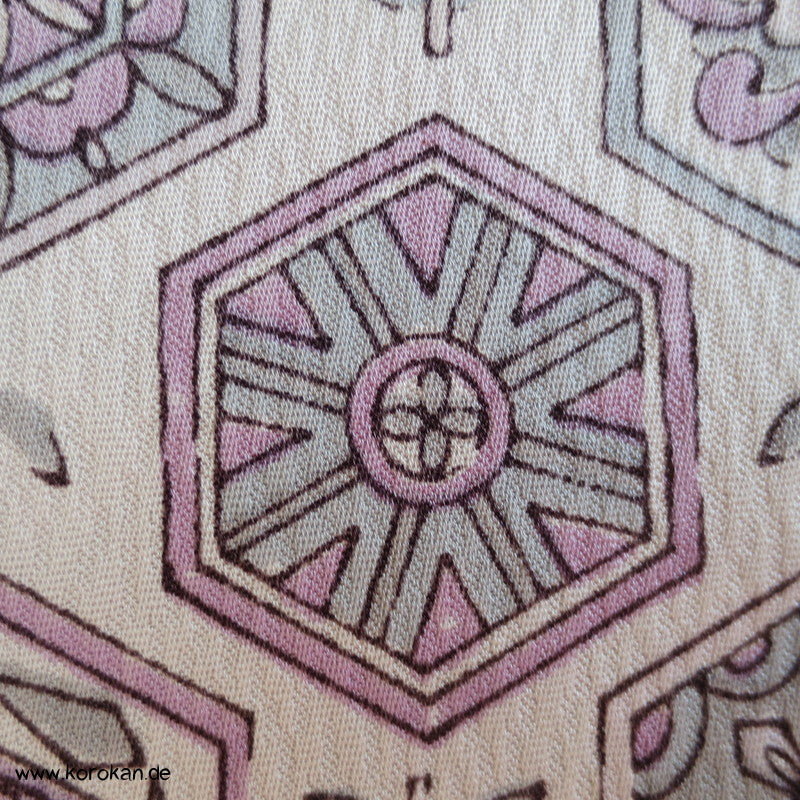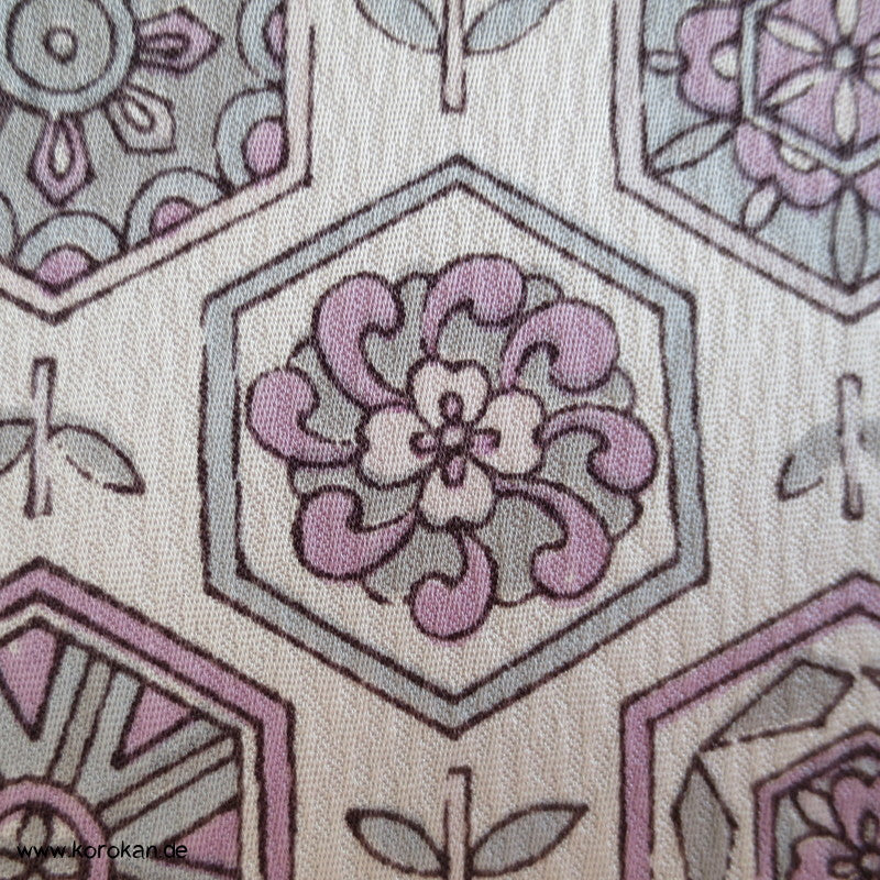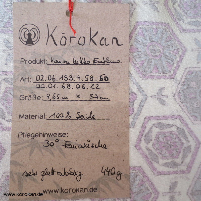 japanischer Vintage unbenutzter Kimono Seidencrepesatin natur Basis mit diagonalem Bokashi Musterkikko in mauve