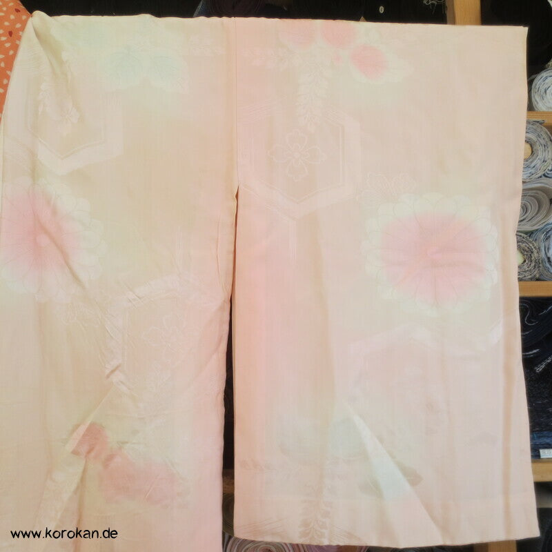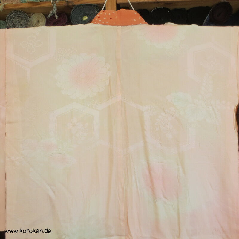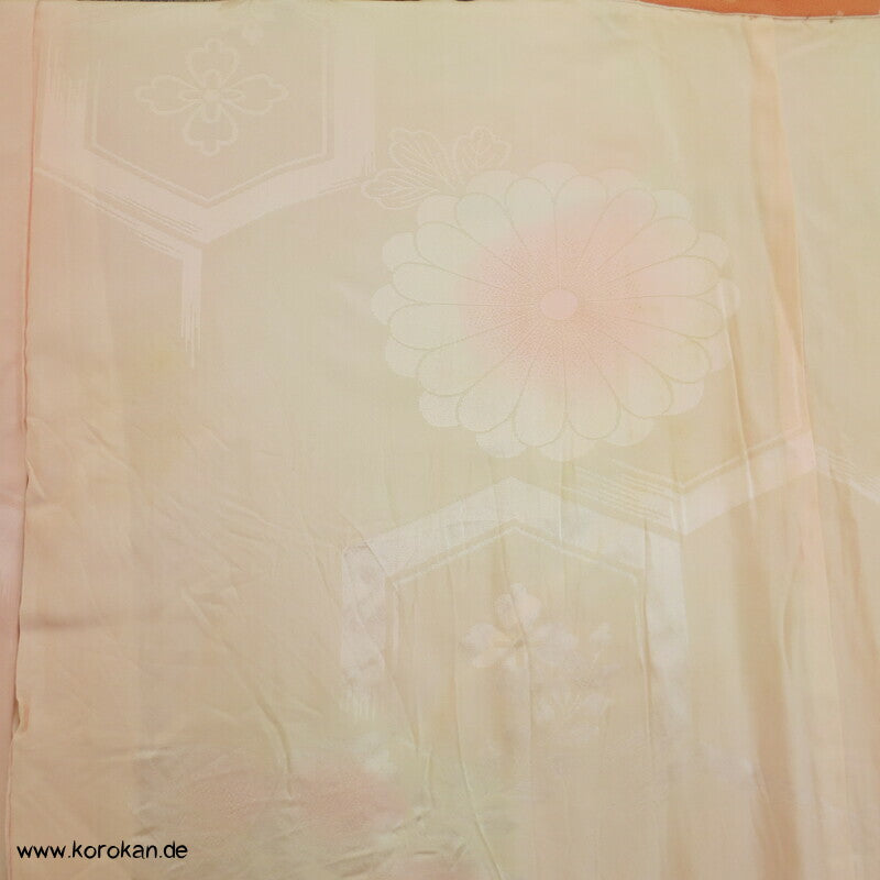 Vintage Juban Unter Kimono Seidendamast Kikko und Kiku mit Farbverlauf, Hand Eri mit kleinen Blättern und vollem Seidenfutter