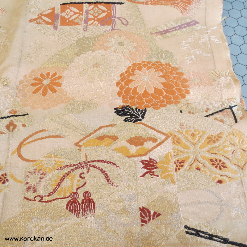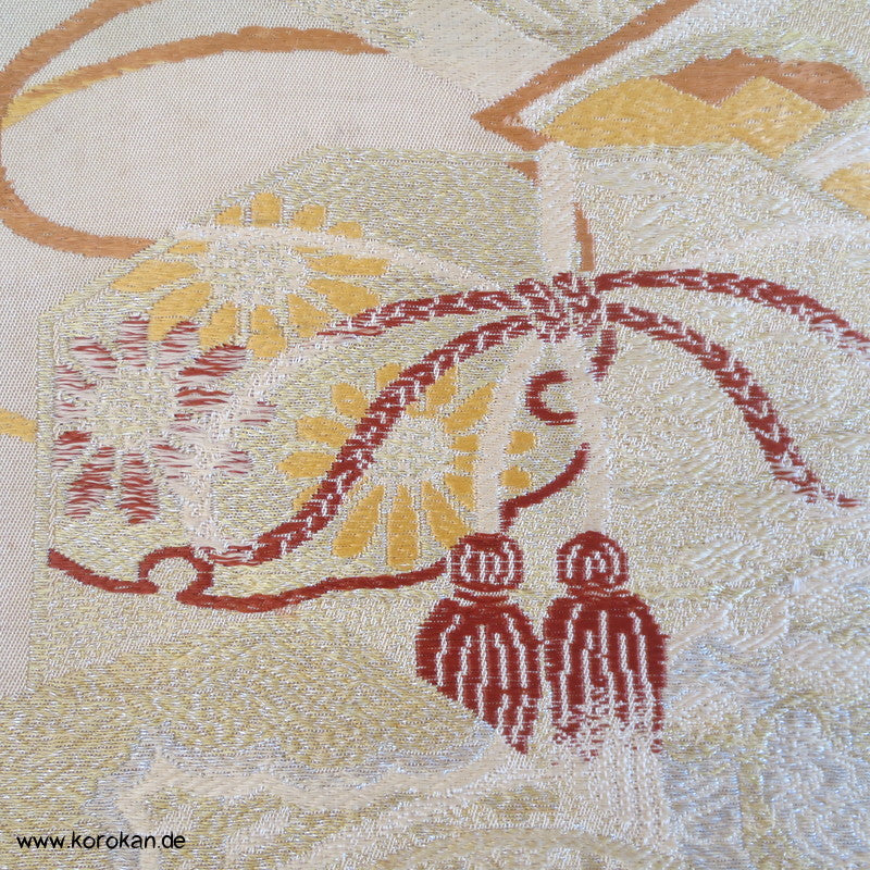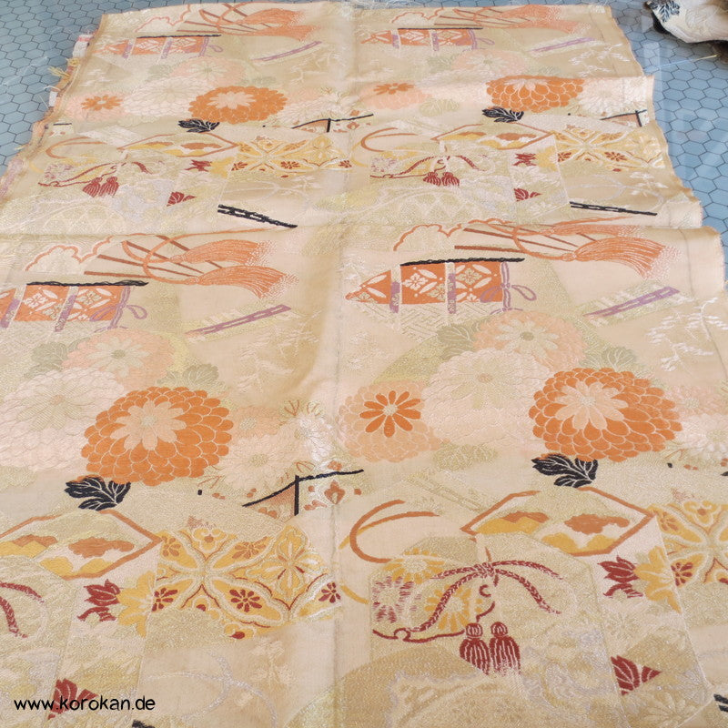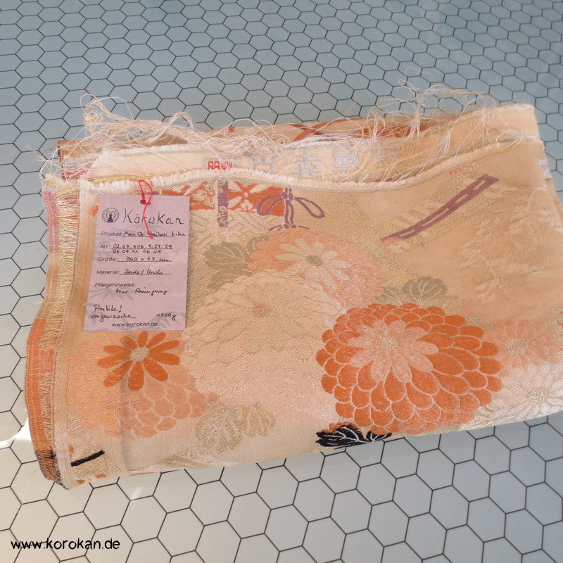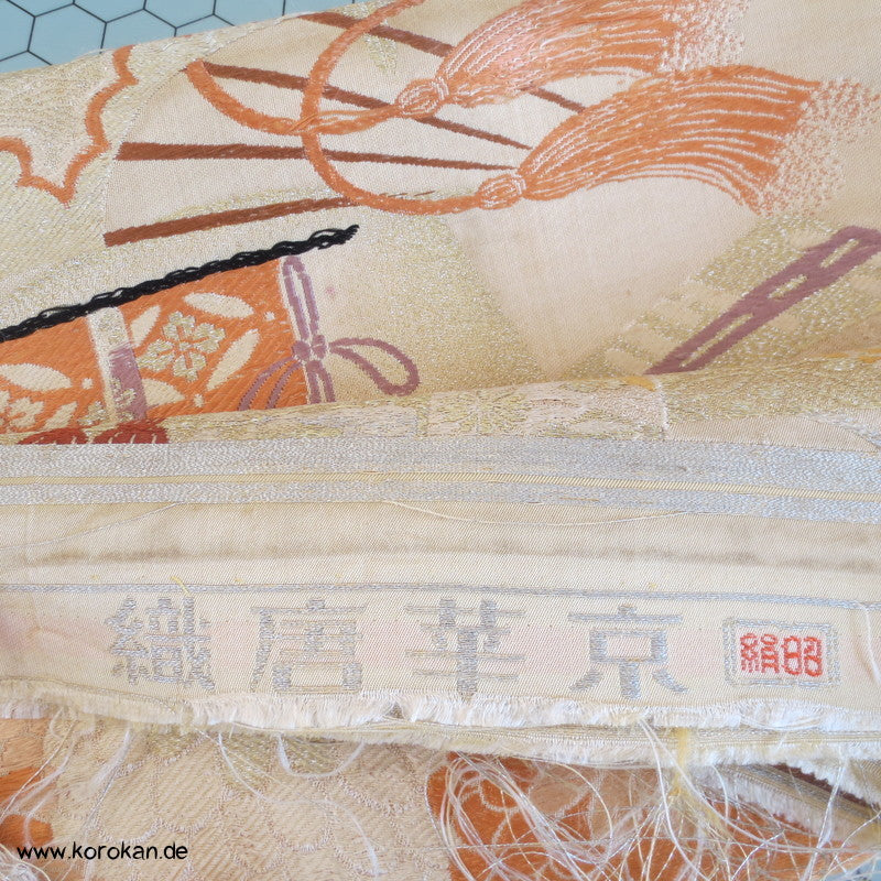 japanischer Araihari aufgetrennter antiker Obi - nur noch ein Stoffrest - ein Teil ist schon eine Schwerthülle geworden.