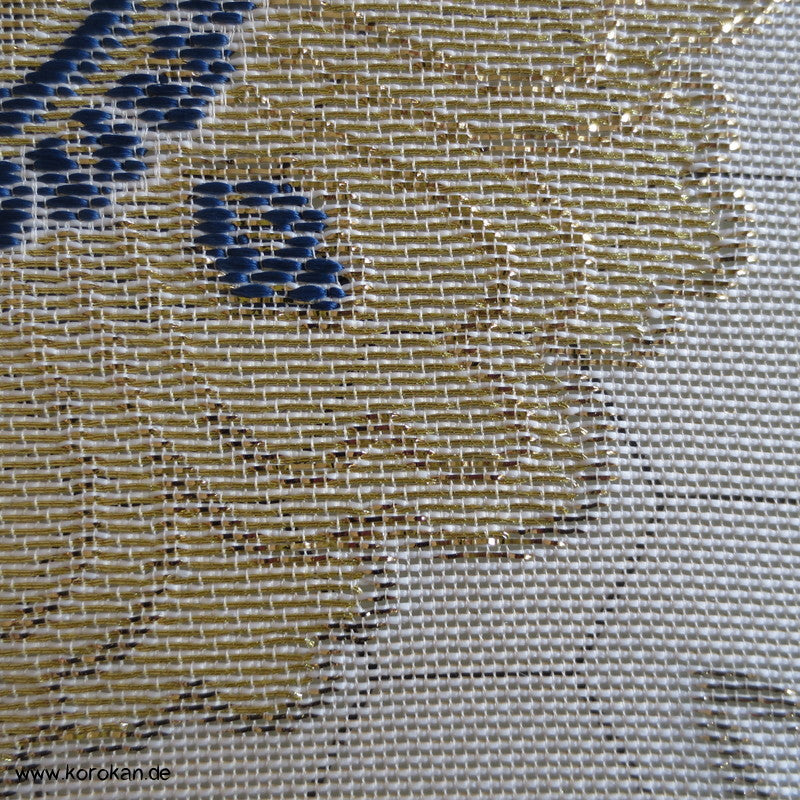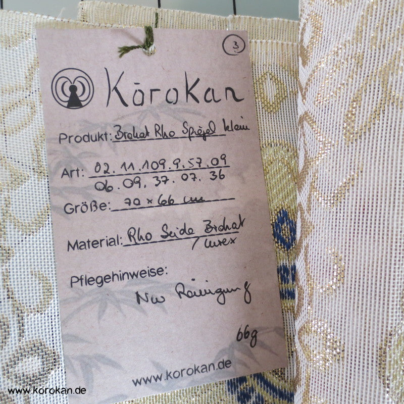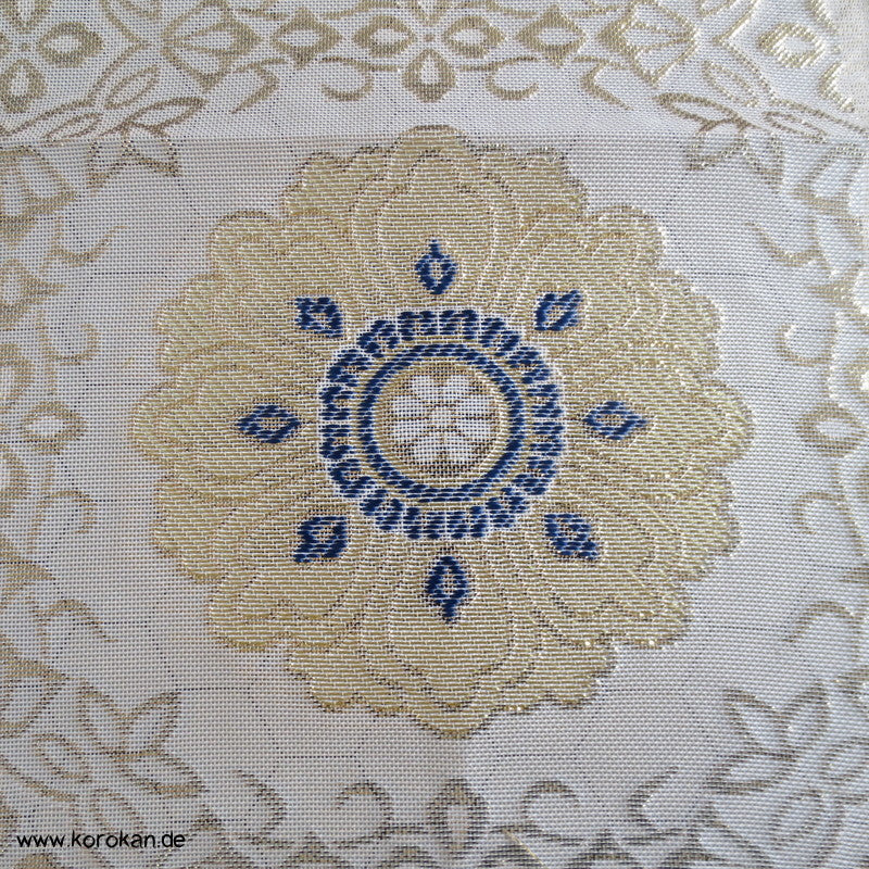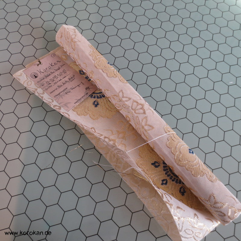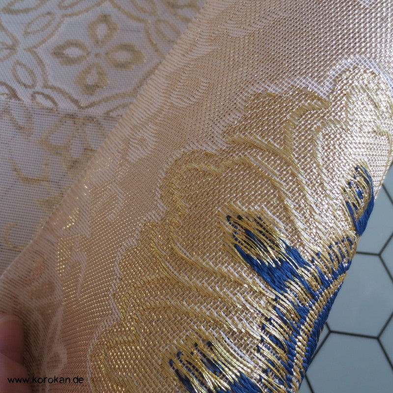 Vintage unbenutzer Seiden Brokat Rest goldene runde Spiegelornamente auf heller halbtransparenter Basis, wohl eher für Tempelzwecke als für Bekleidungszwecke gewebt