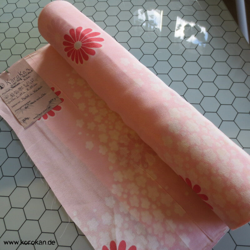 Kiku Fluss rot rosa - Acetat, Druckfehler, Kimono / Juban Crepe