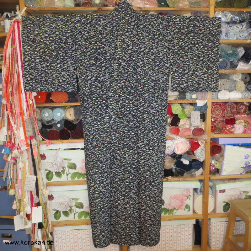Kiku, Kiefernnadeln, Schmetterlinge Tsumugi Seiden Komon Japan Kimono
