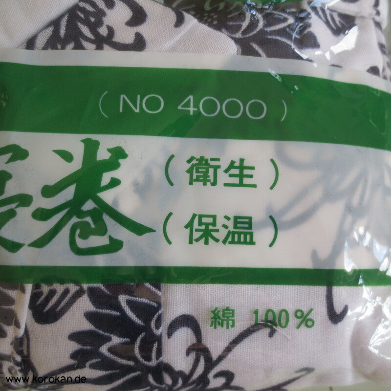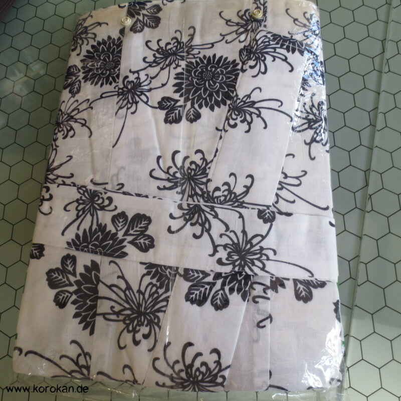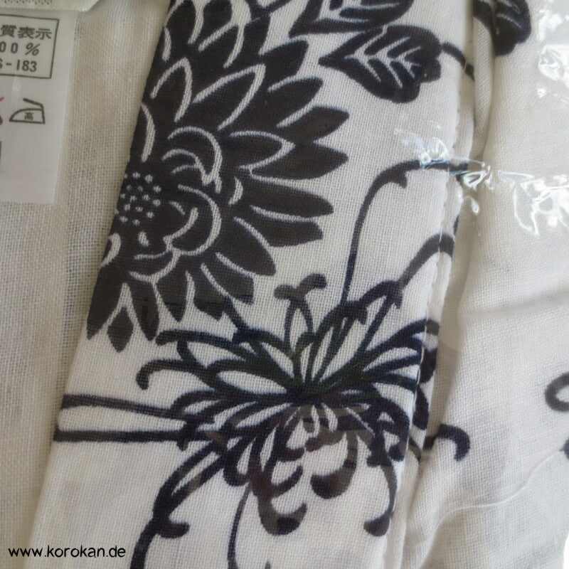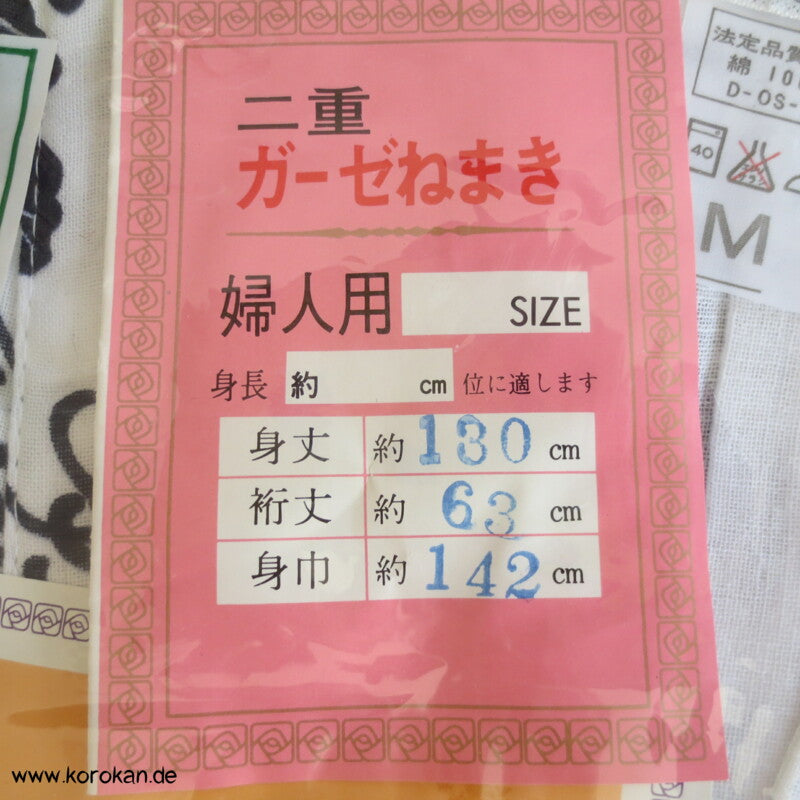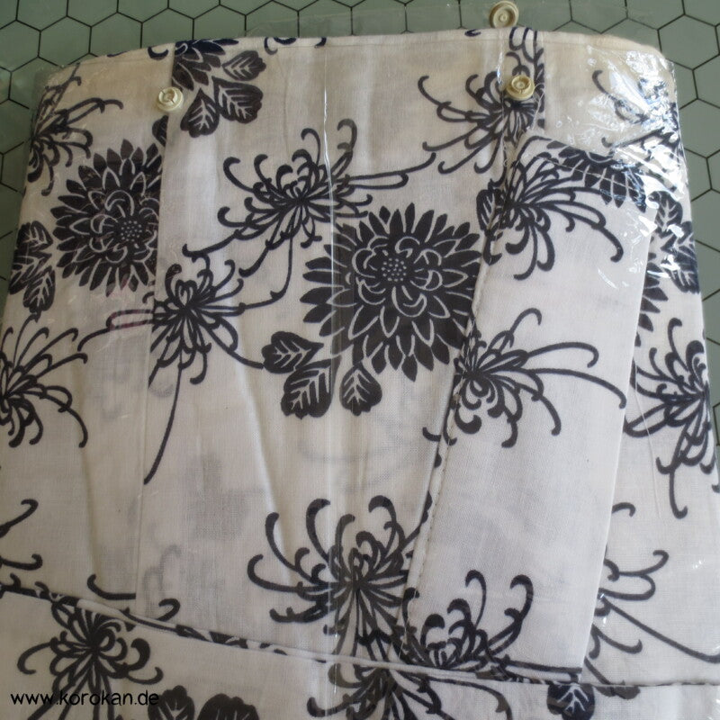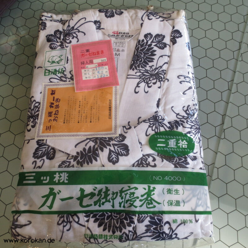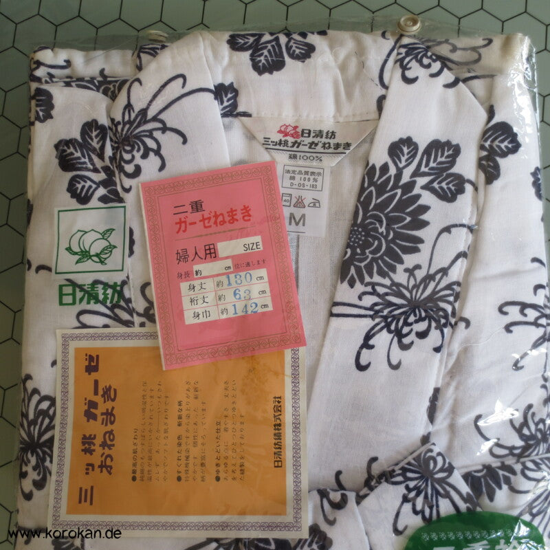 Vintage unbenutzter originalverpackter japanischer Nemaki Schlafkimono - weiße Baumwolle mit blauen Chrysanthemen
