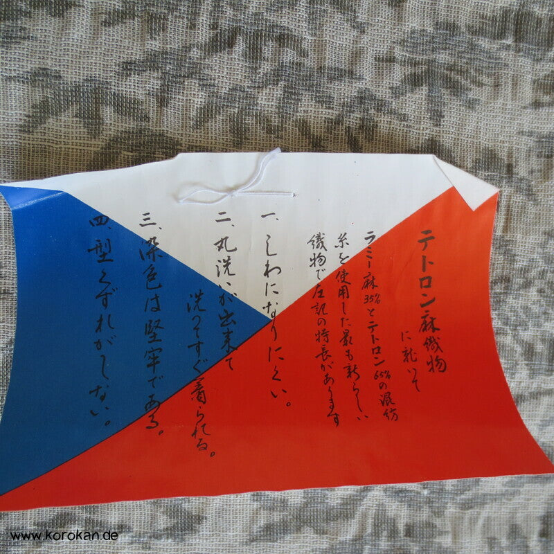 Hanf oder Ramie mit Polyester gemischt, keine genauen Anteile bekannt