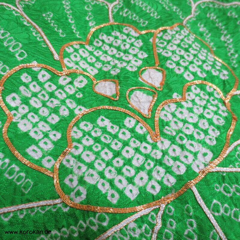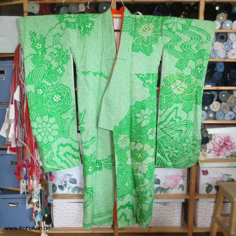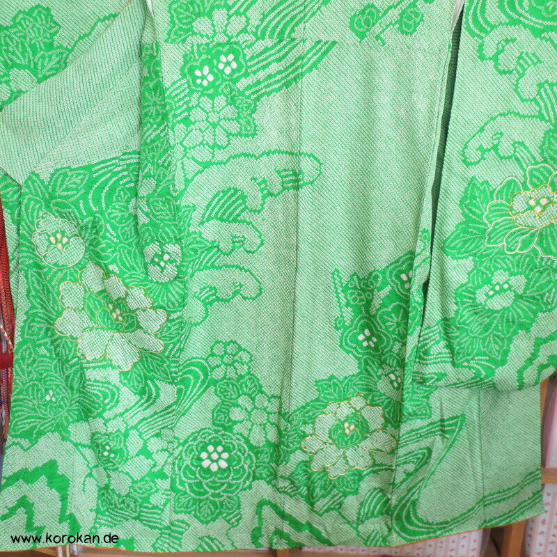 Kimono Full Shibori Päonien und Wellen Furisode, mit Goldstickerei
