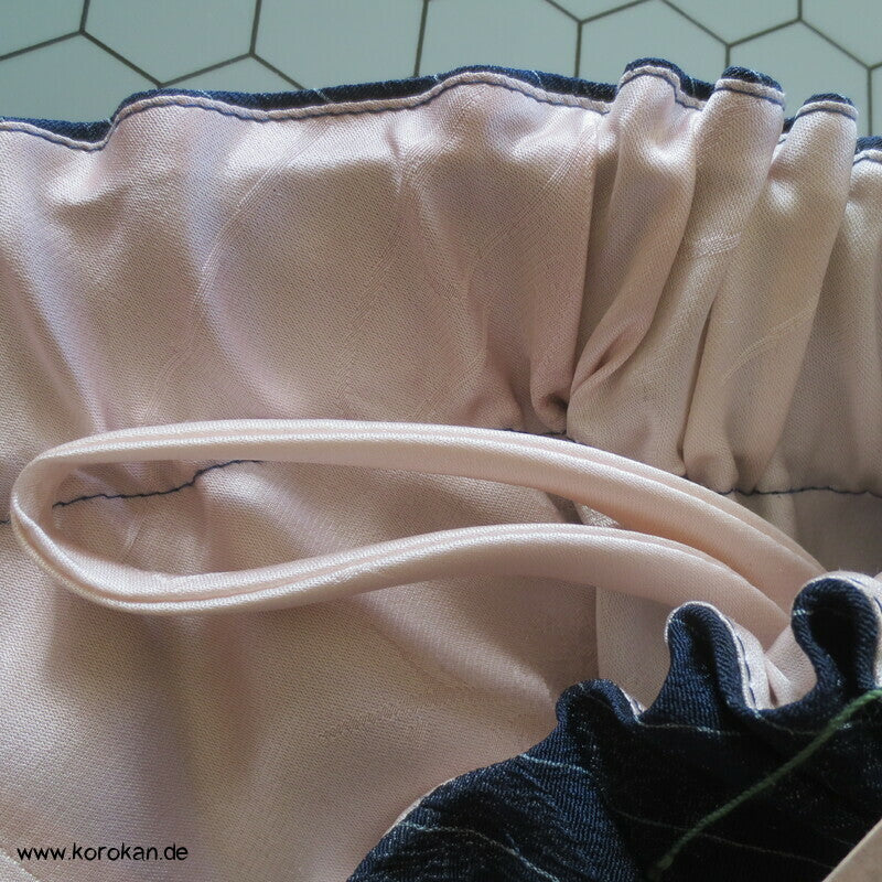 Doppellagiger Gummizugrock aus Bias Cut Kimono Seiden Stoff, Oberstoff Sayagata Muster, Unterrock aus Damast Seide in rosa