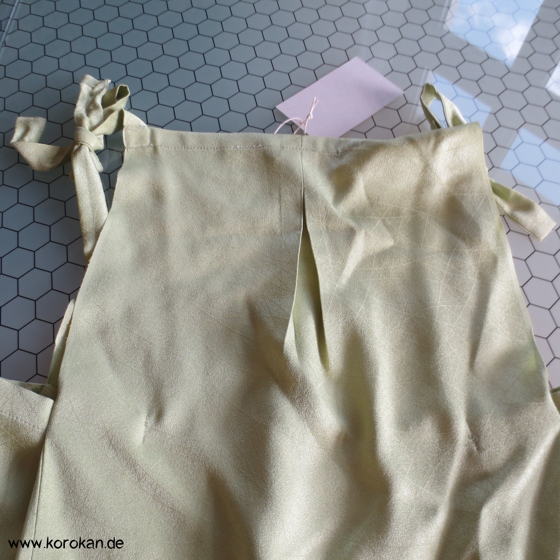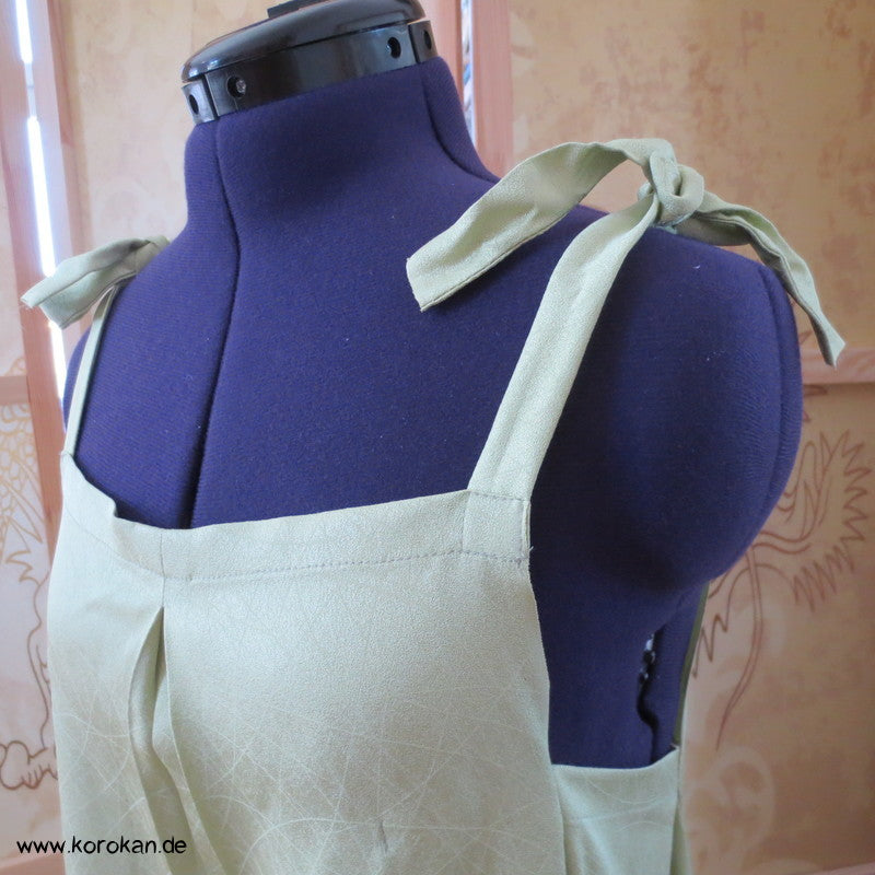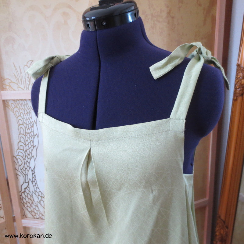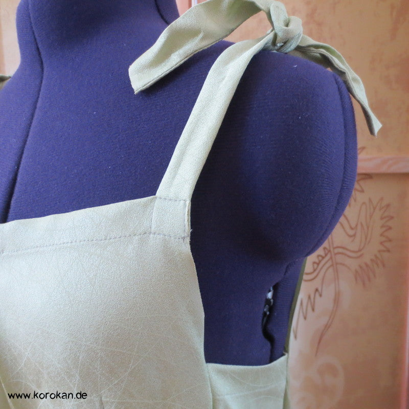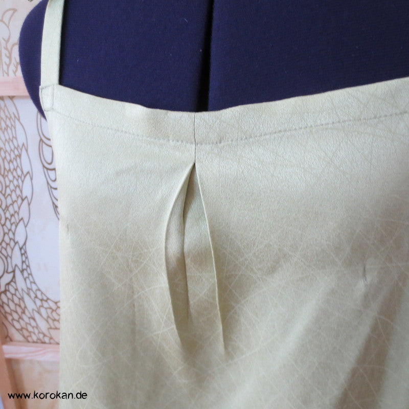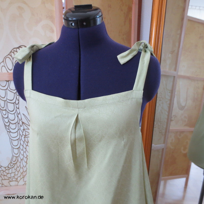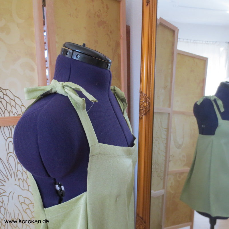 Kimono Seidendamast Top hellgrüne zart melierte Seide, Rechteckig Kanten, Zero Waste mit Bindebandträger, die sich gut auf die individuell gewünschte Länge einstellen lassen