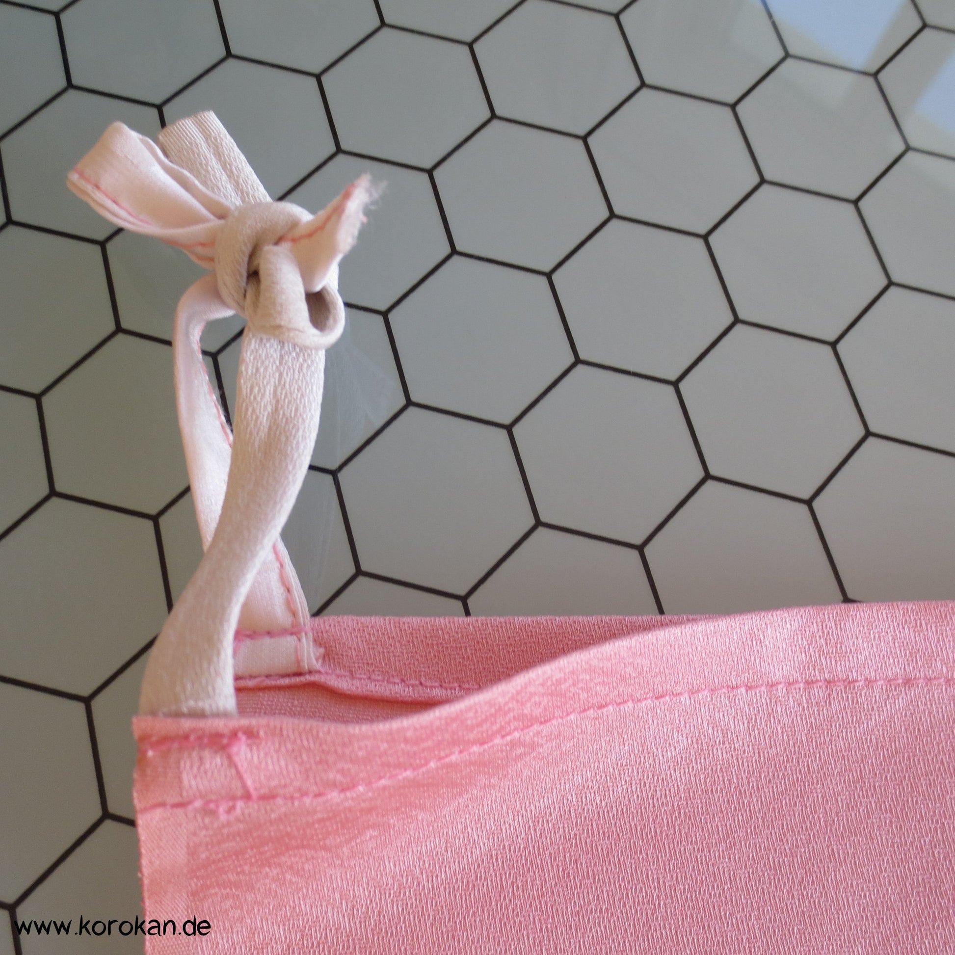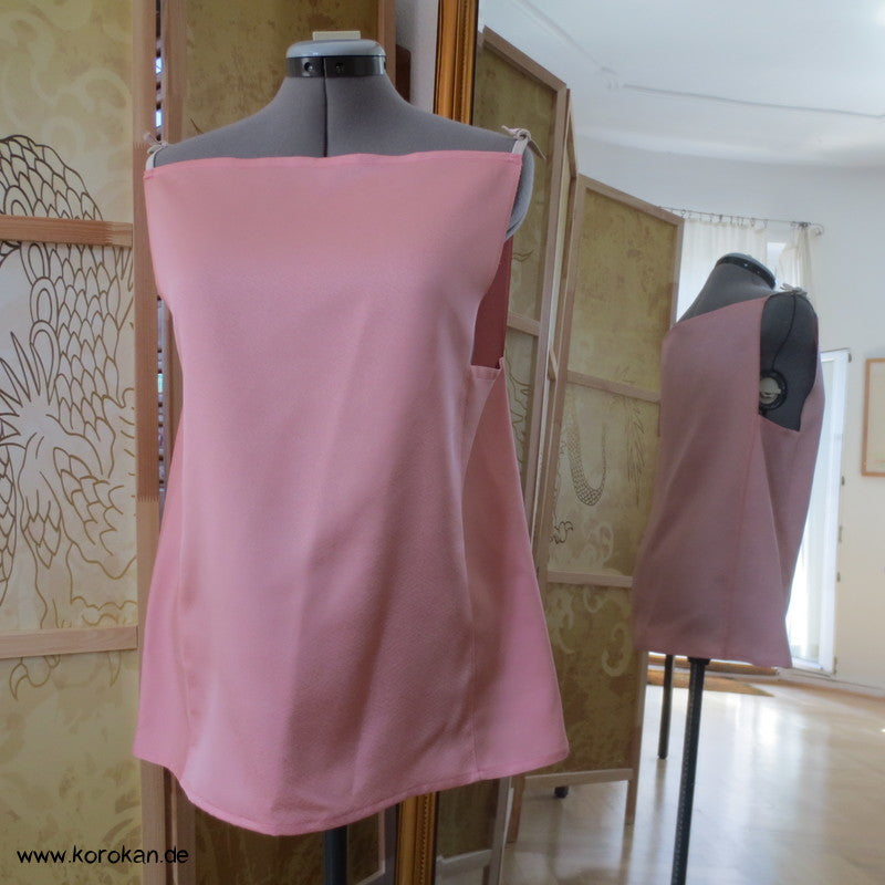 Kimono Seidendamast Top rosa, Rechteckig Kanten, Zero Waste mit Bindebandträger, die sich gut auf die individuell gewünschte Länge einstellen lassen