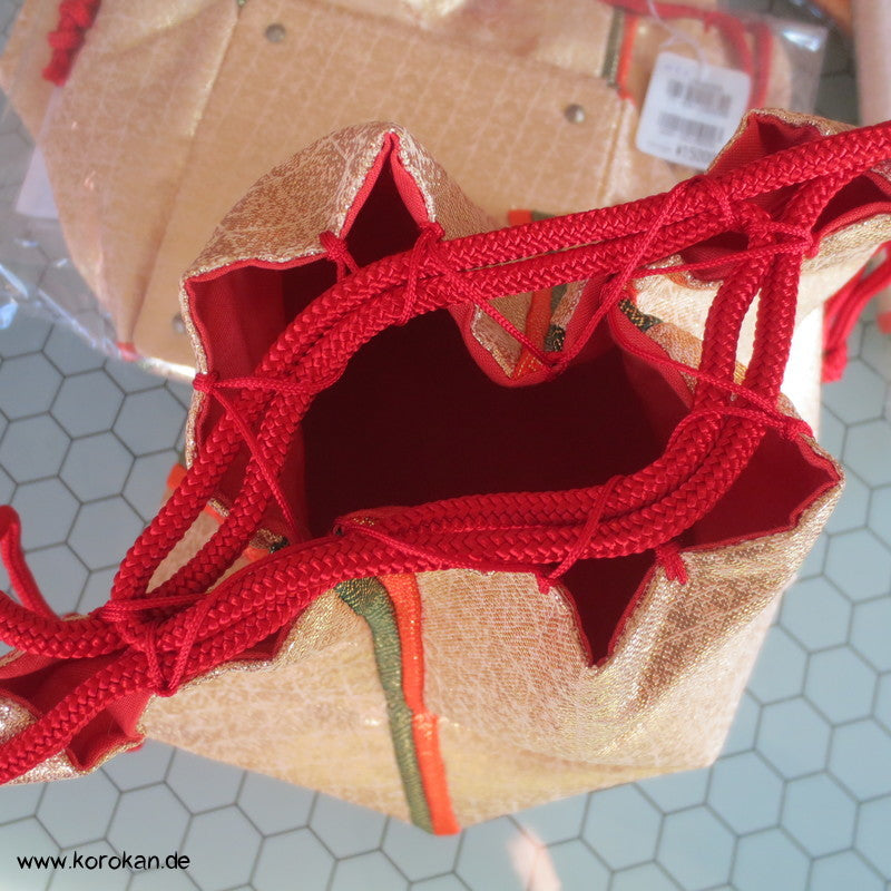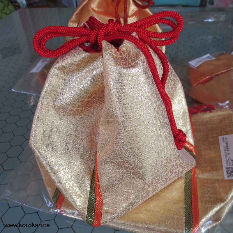 Kinchaku Zugbeutel - Tasche aus Brokat, goldglänzend