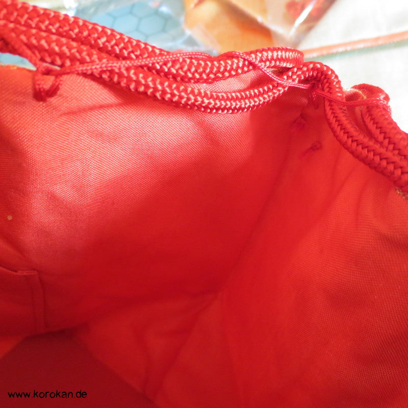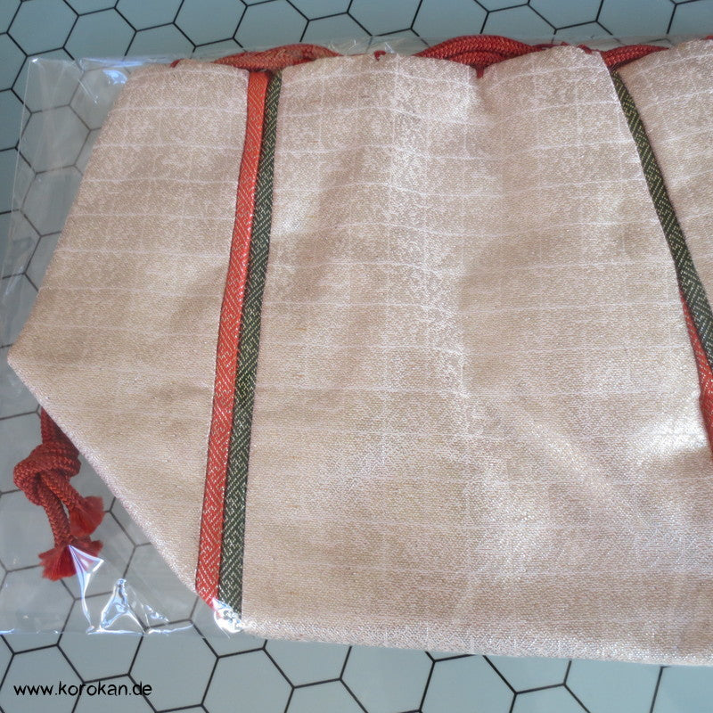 Vintage Kinchaku Kimono Beuteltasche / Pompadour mit Durchzugband und festem verstärktem Rechteckboden aus Seidenbrokat