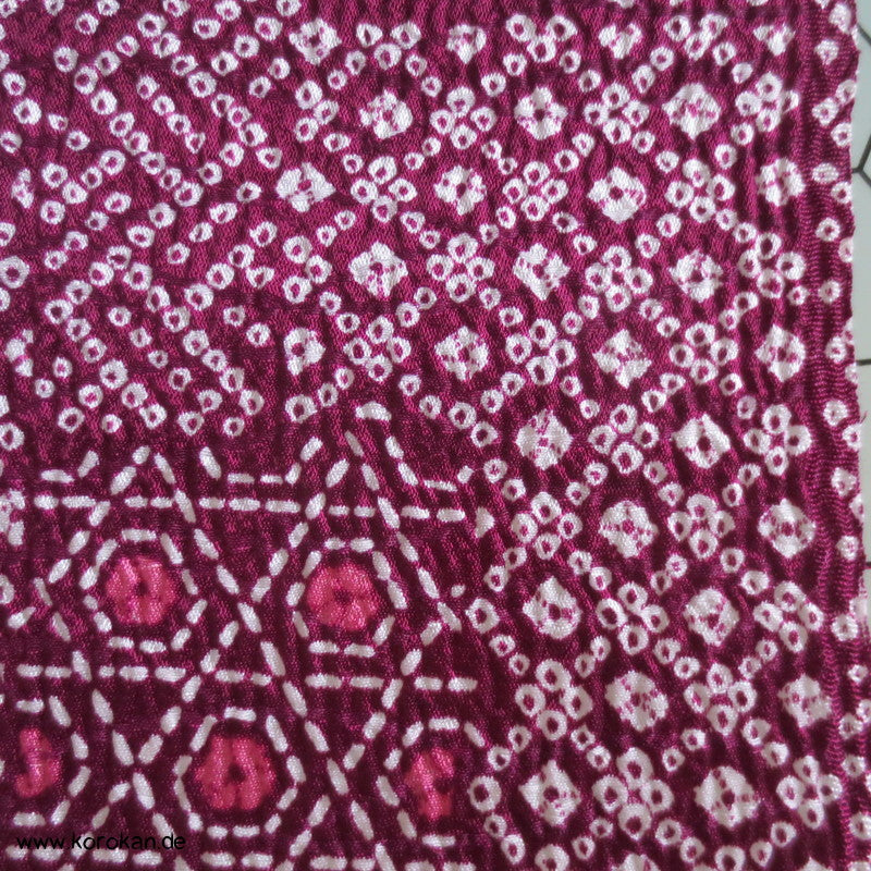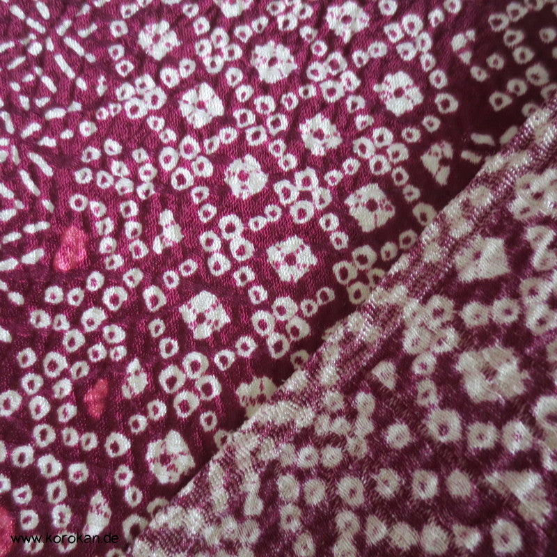 Imitat Shibori, also ein geprägter Seersucker als Grundlage mit einem Kanoko Dot und Zweige Druck.