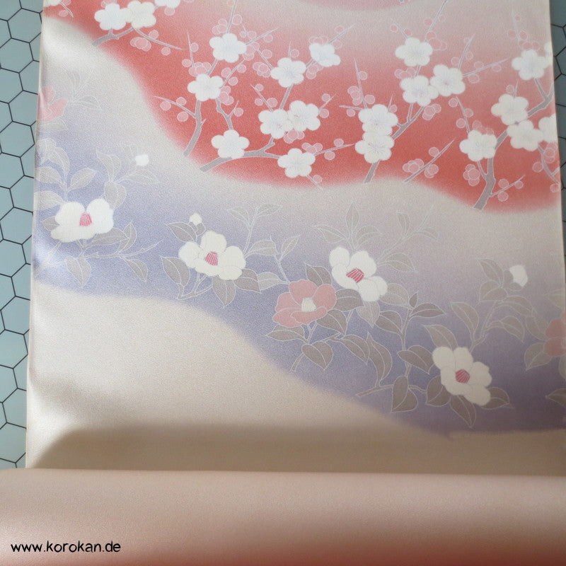 Kirschzweige, andere Blumen, teilbestickt Tanmono