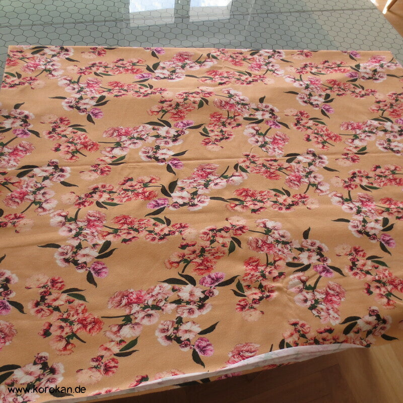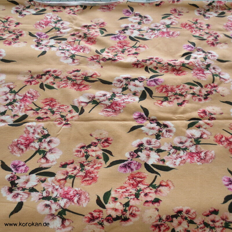 unbenutzter neuer Baumwoll Interlock Jersey mit einem Kirschzweige Druck