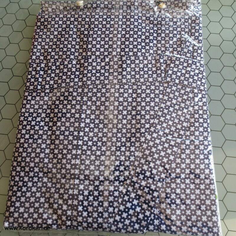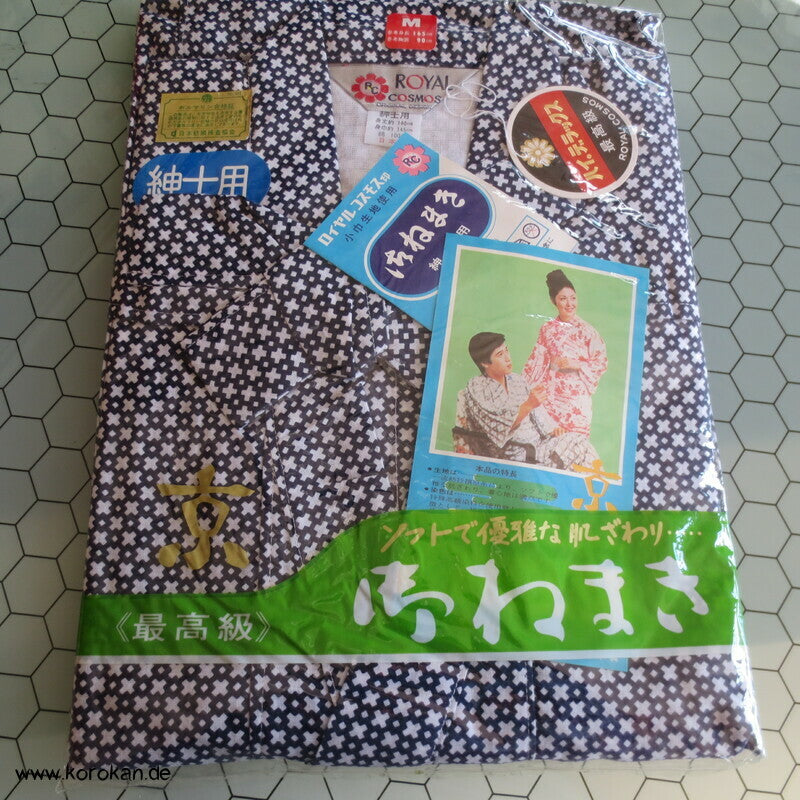 Vintage unbenutzter originalverpackter japanischer Nemaki Schlafkimono - weiße Baumwolle mit blauem Kreuzemuster