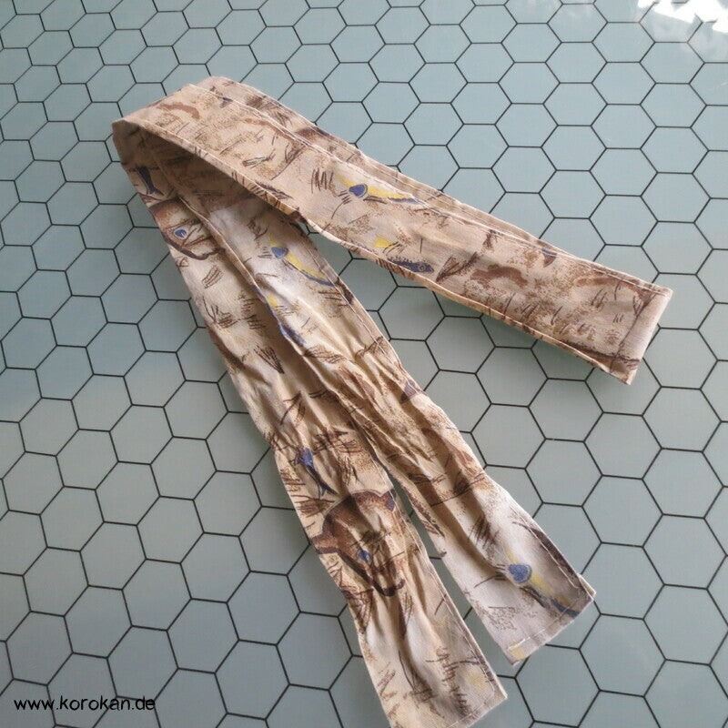 Vintage kleiner Baumwoll Himo Bindeband Fische auf beige