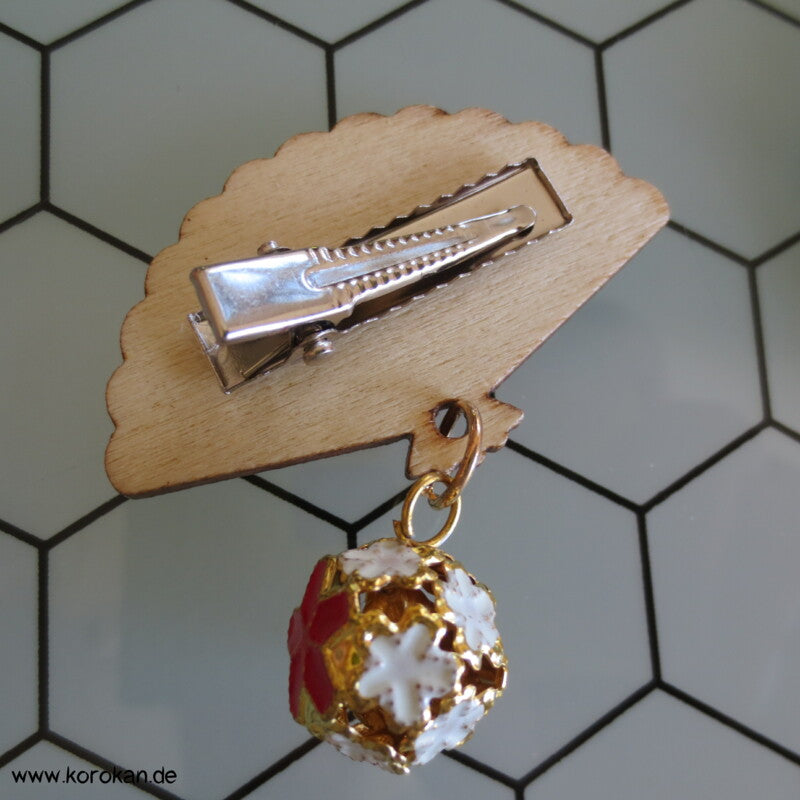 kleiner Holzfächer mit Anhänger Haarklemme