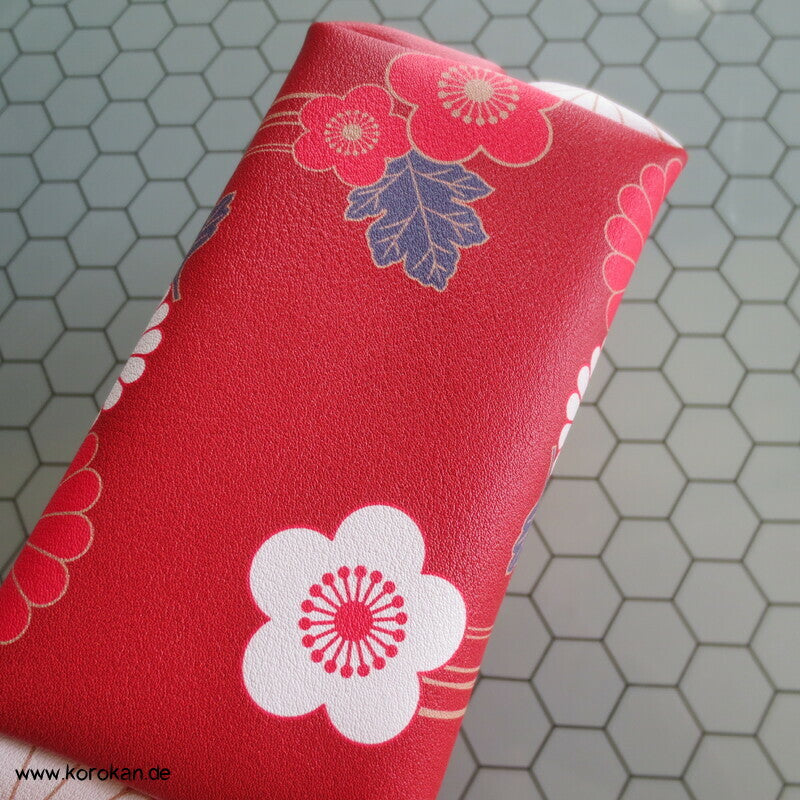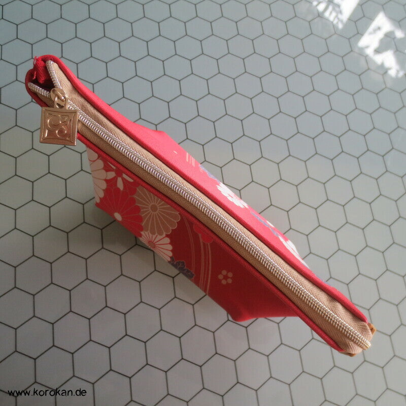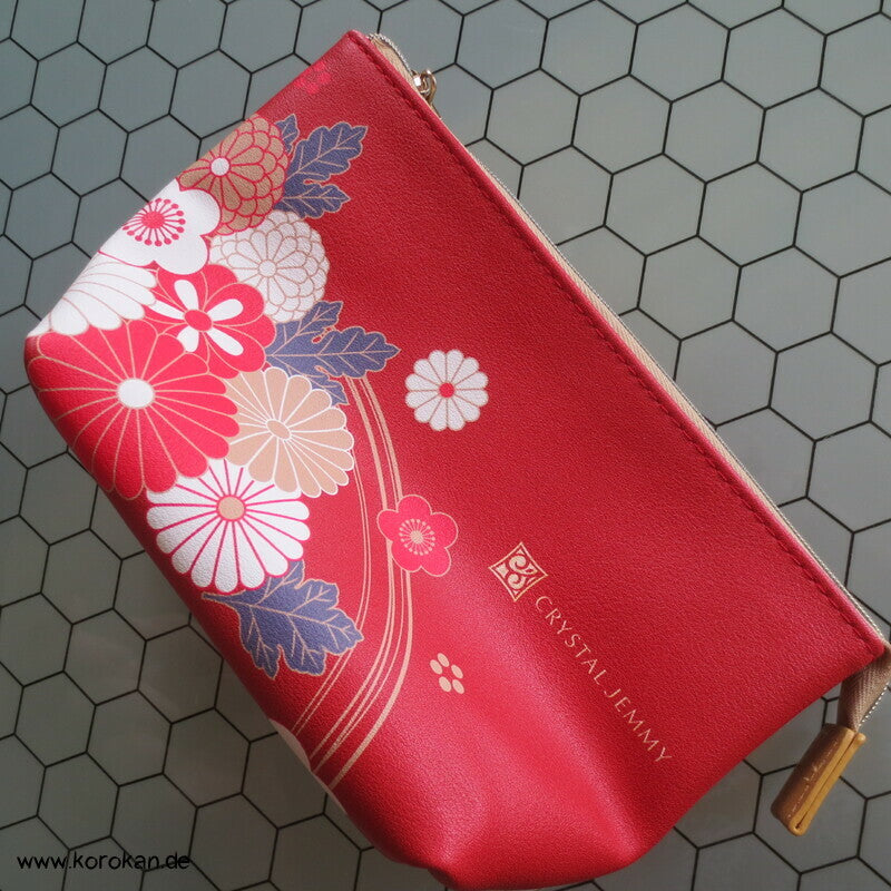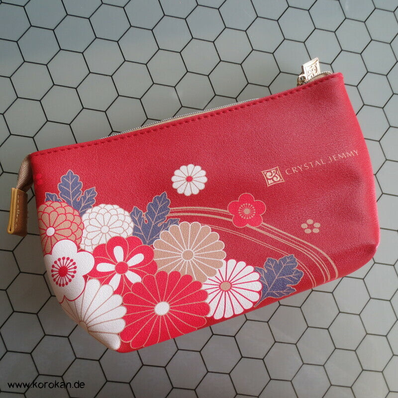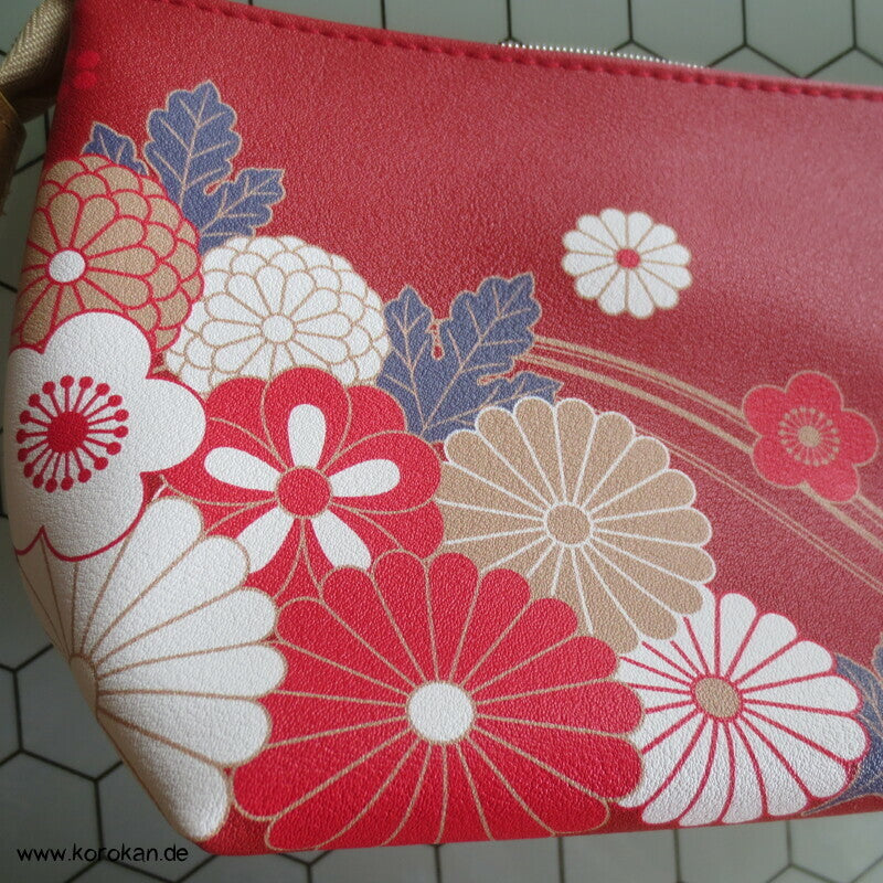 japanische Crystal Jenny Kulturbeutel - rot mit japanische Blüten