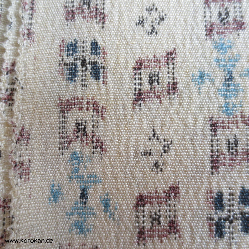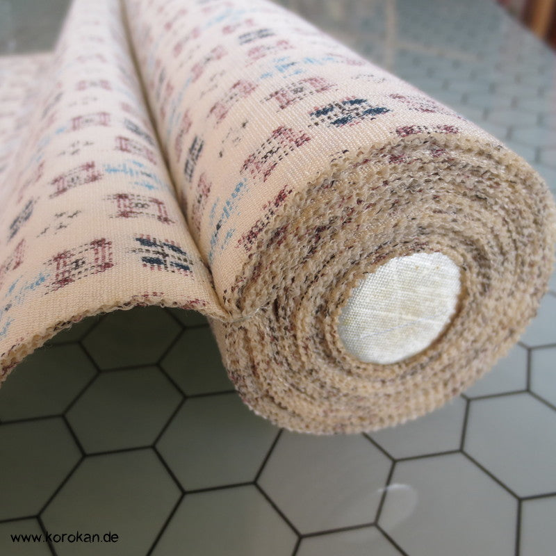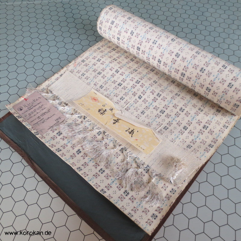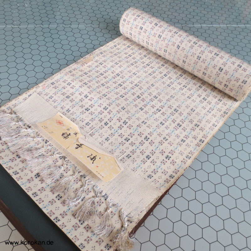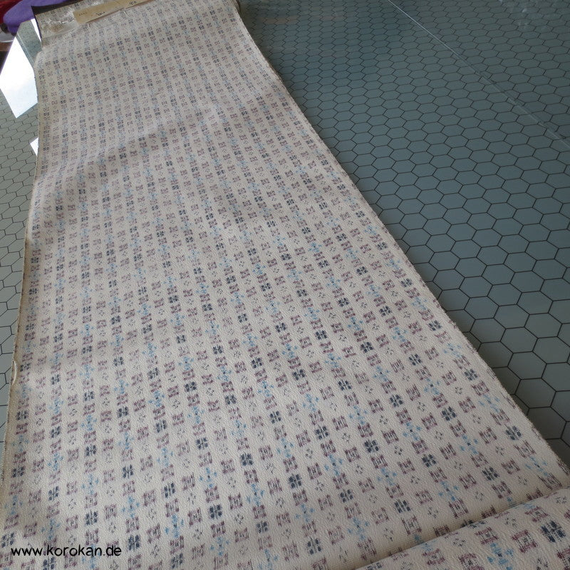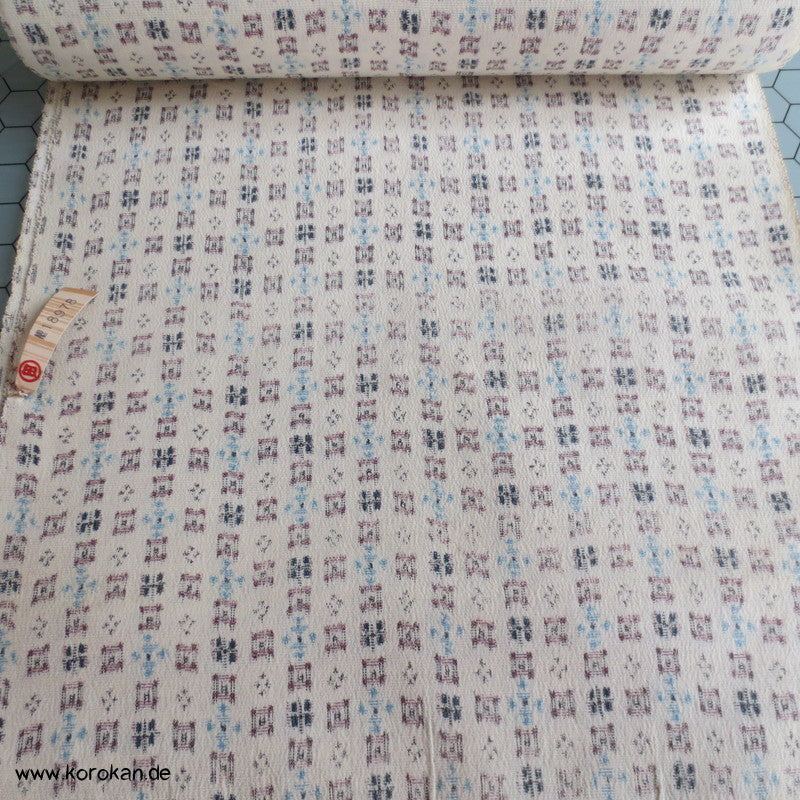 Vintage unbenutzte Stoffrolle Kimono Tanmono Kasuri Igeta Kreuze in blau grau braun auf natur