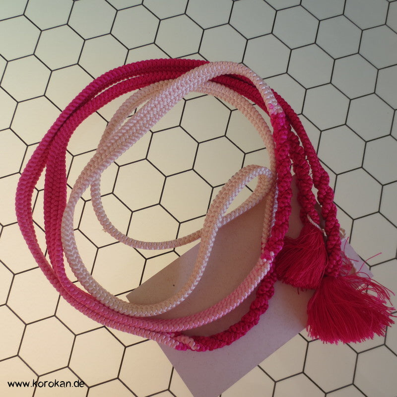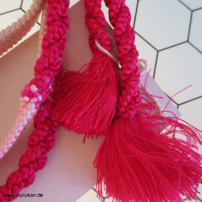 japanischer Flecht Seiden Obijime pink weiß mit Zopf Abschnitten