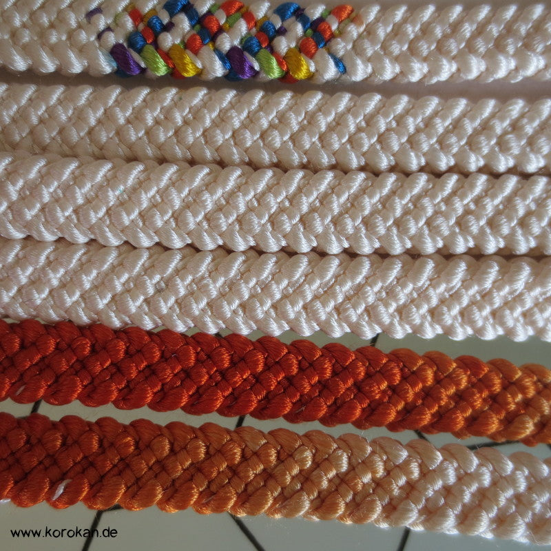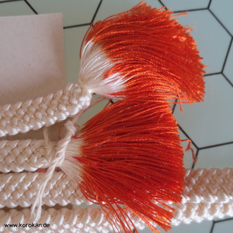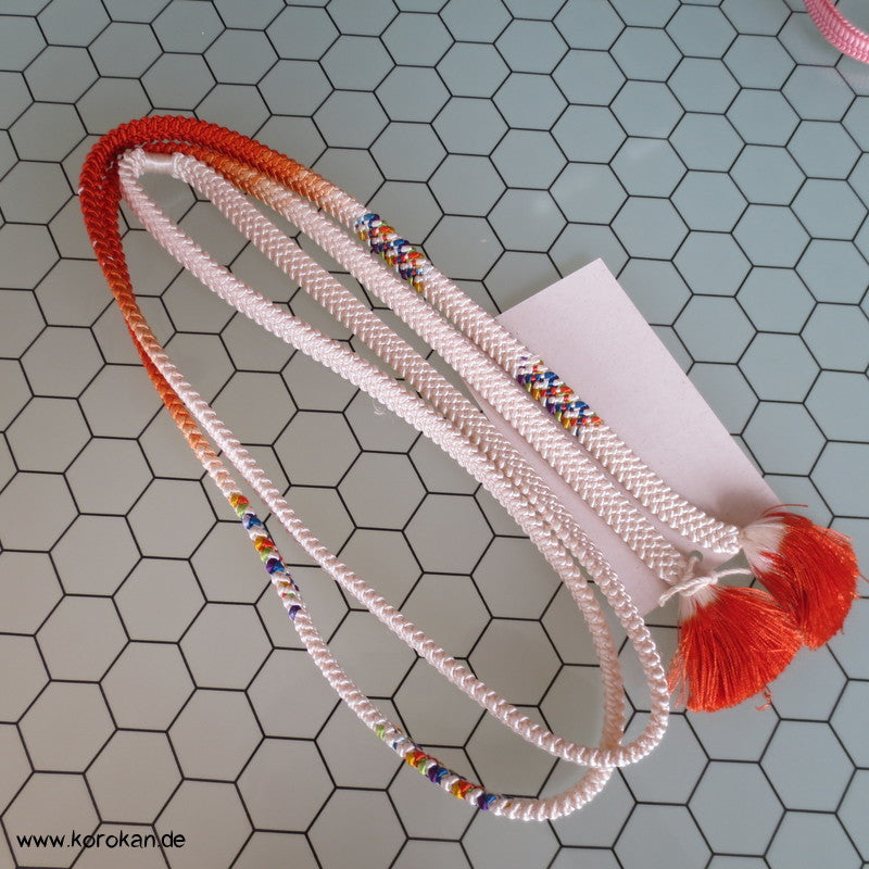 Vintage japanischer Flecht Seiden Obijime natur Verlauf persimmon mit buntem Abschnitt Farbverlauf