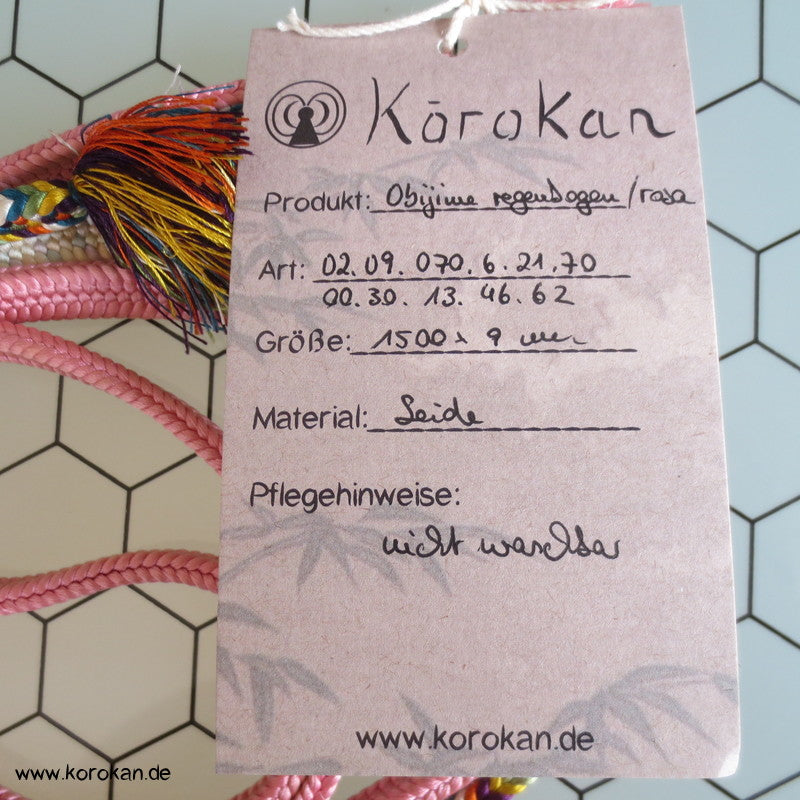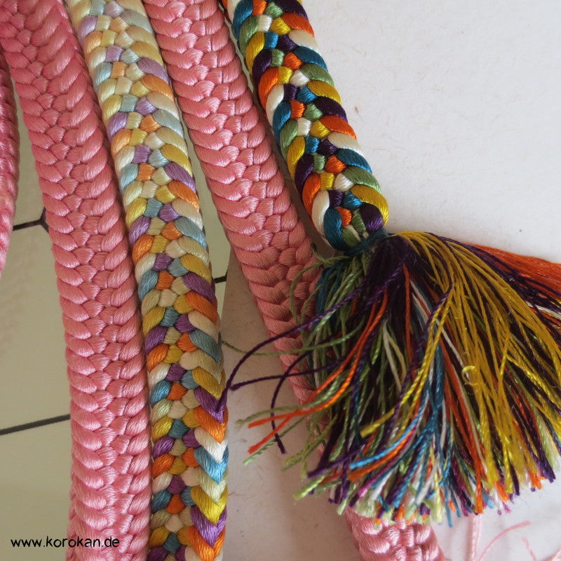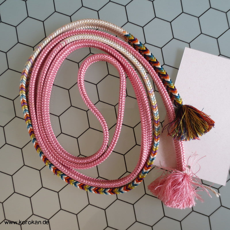 Vintage japanischer Flecht Seiden Obijime natur Verlauf rosa mit buntem Abschnitt Farbverlauf