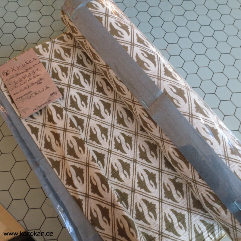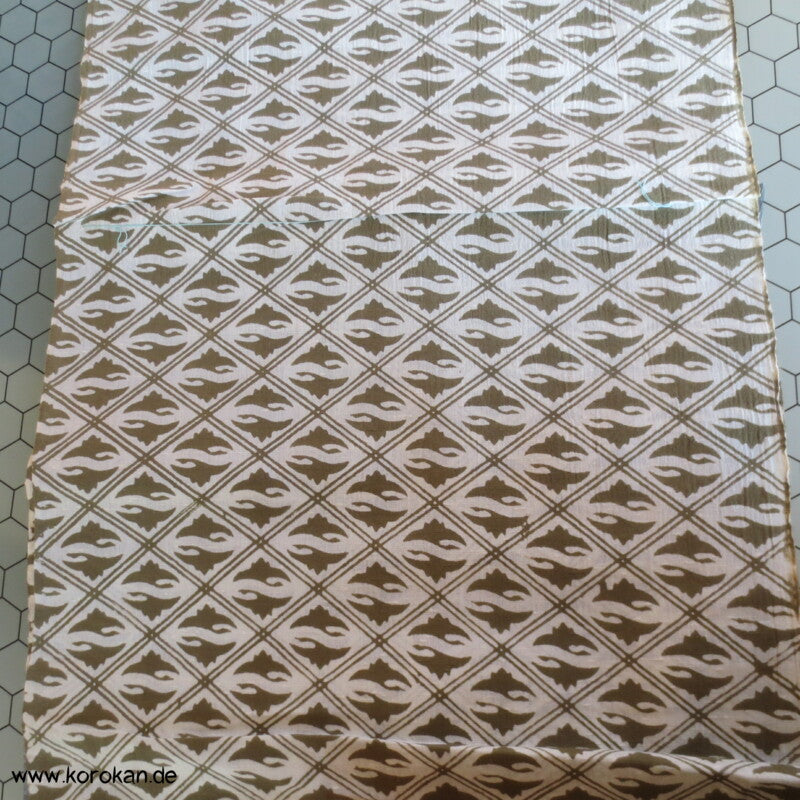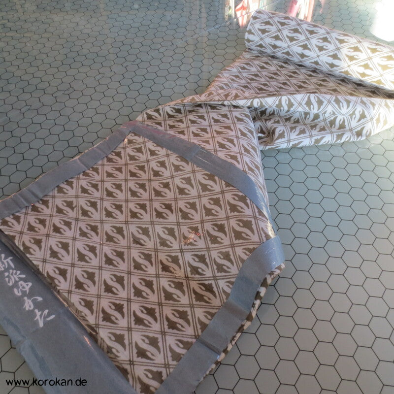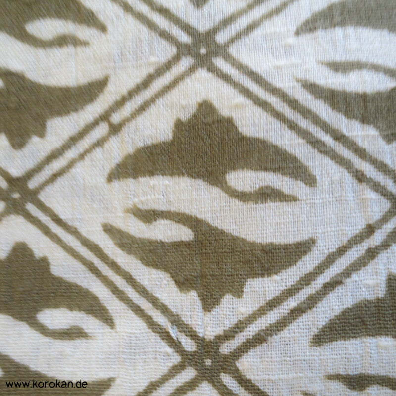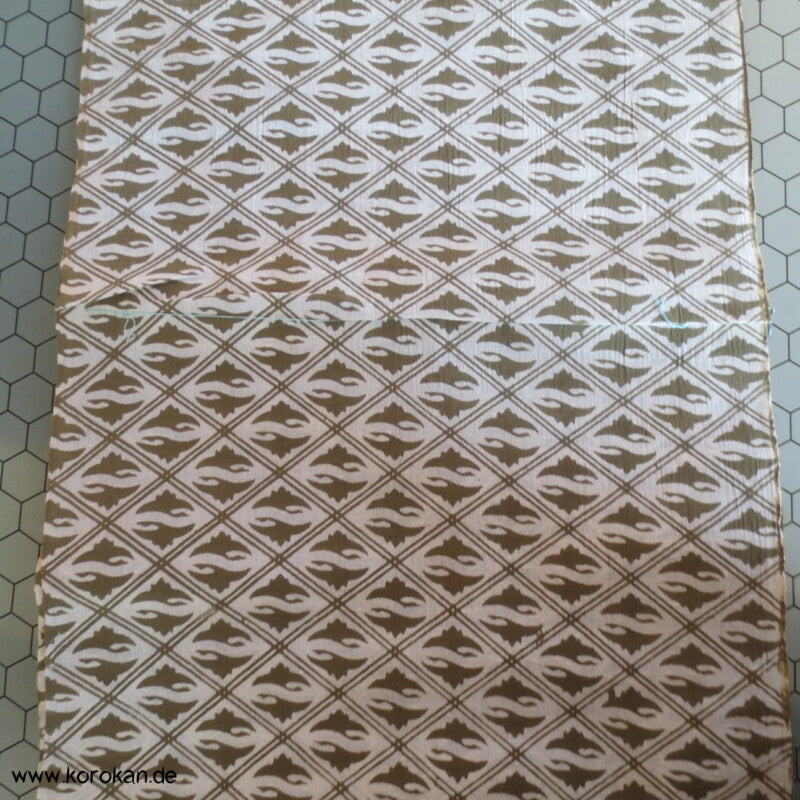 Vintage unbenutzter originalgehefter Yukata Leinwand Baumwoll Stoff für Sommerkimono Doppelkranich Diamantrauten in oliv auf weiß