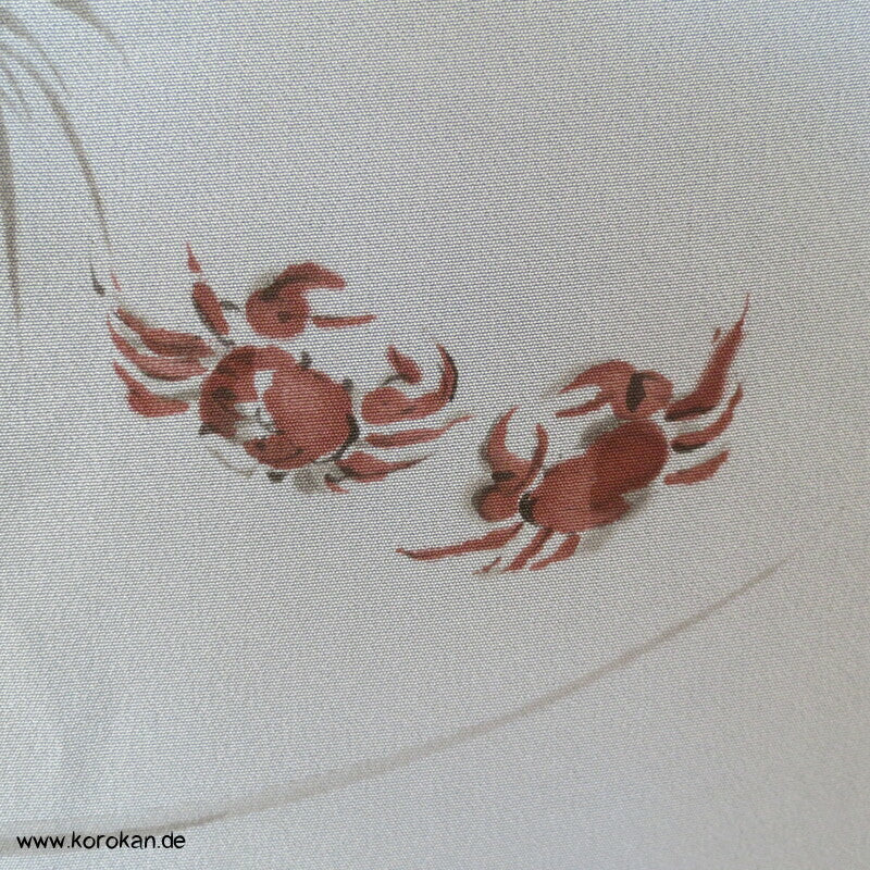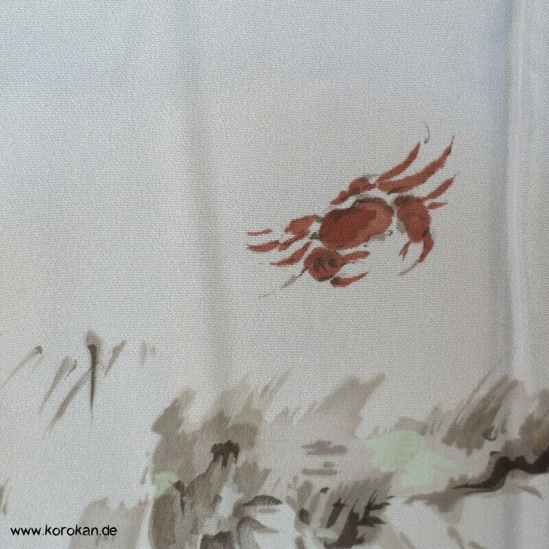 Krebse, Bambus, Kanji Gedicht Juban Kimono, Habutai Seide