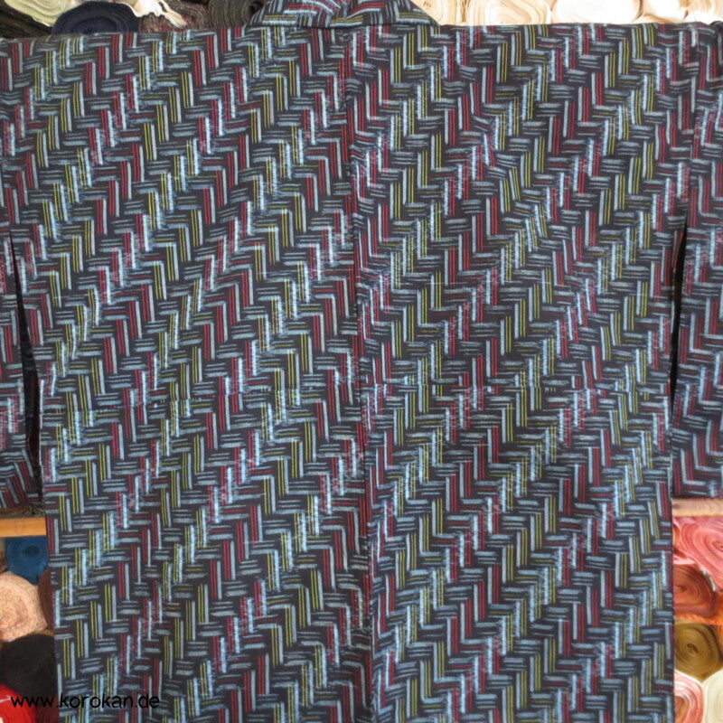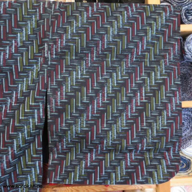 Vintage Hitoe Kasuri Baumwoll Kimono, abstrakte Muster auf blau, garngefärbtes Muster.