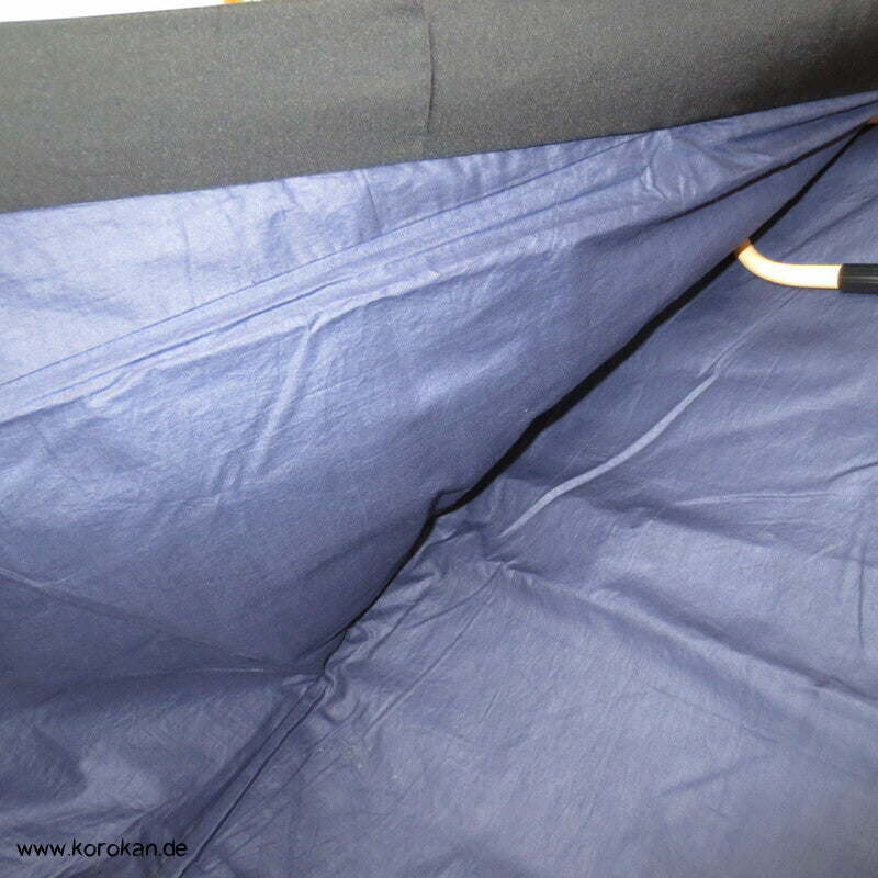 Vintage Männer Honan Seiden schwarzer formeller Kimono, mit 5 Blüten Mon, Futter blauer Baumwoll Chintz, Der Klassiker. Kurz und breit, gut unter dem Hakama zu tragen