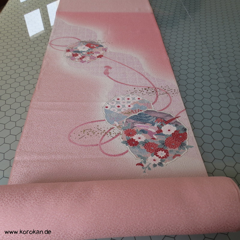 Kusudama, Bänder auf rosa Tanmono, Golddruck