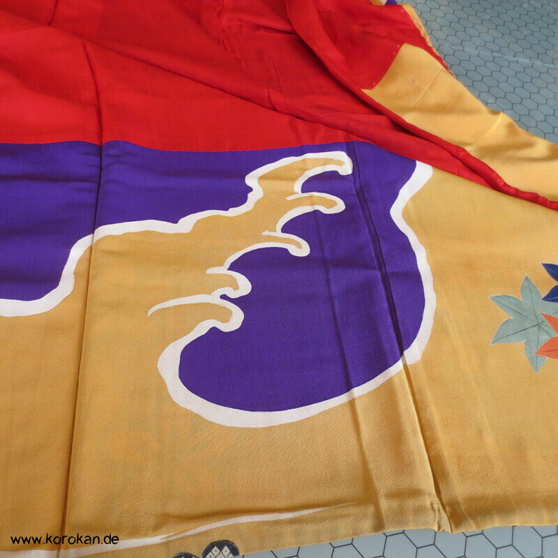 Kusudama, Wellen auf violett, antiker Seiden Furisode Kimono