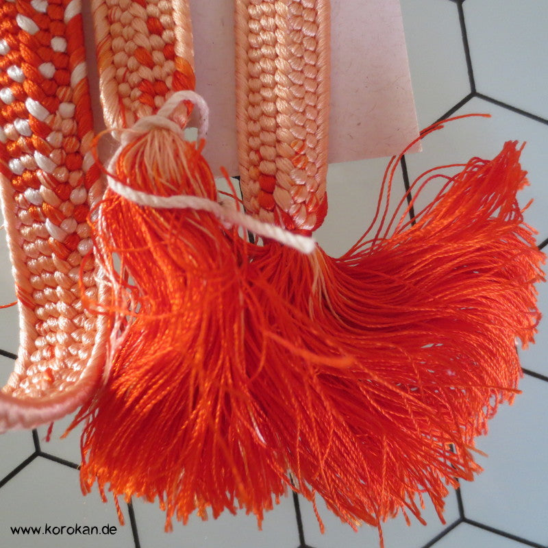 japanischer Flecht Seiden Obijime persimmon lachs weiß Koi Farbverlauf