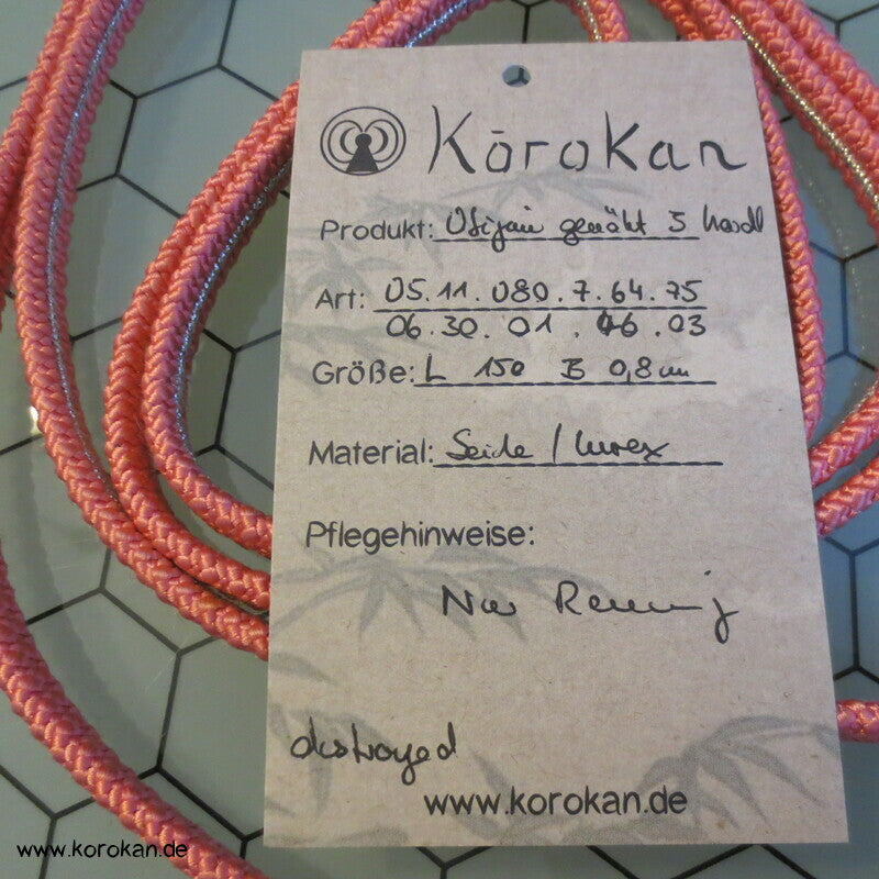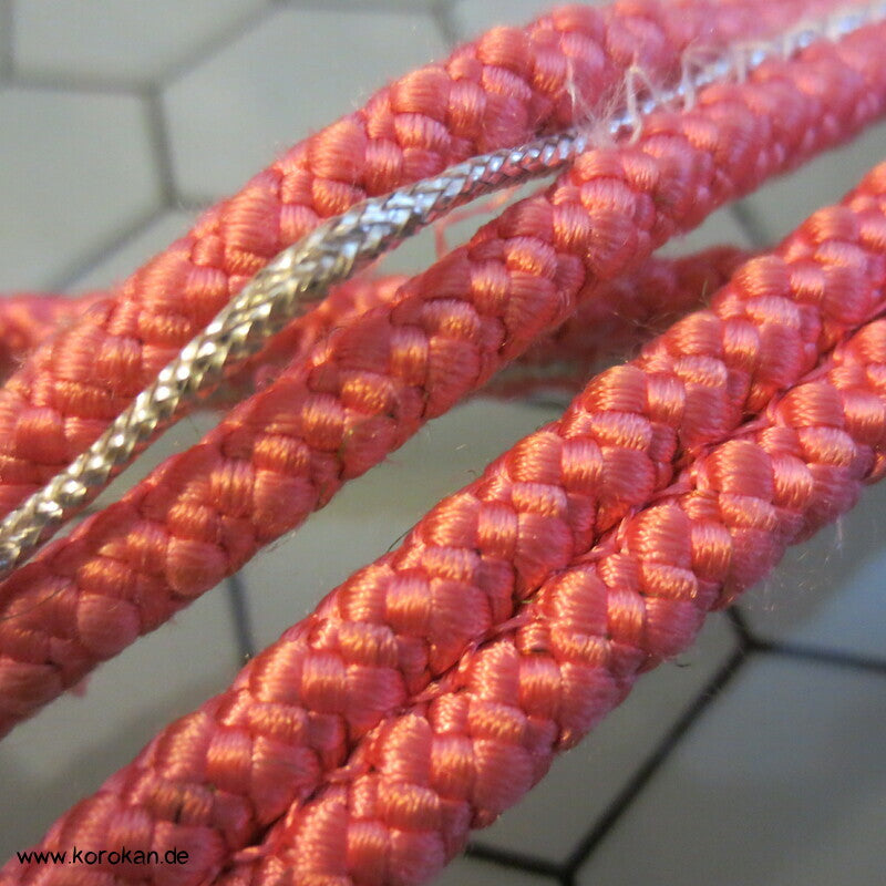 lachs - silber Obijime, Seide / Lurex, genähte Kordeln