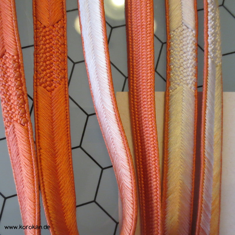 japanischer Flecht Seiden Obijime lachs blassrosa weiß Koi Farbverlauf
