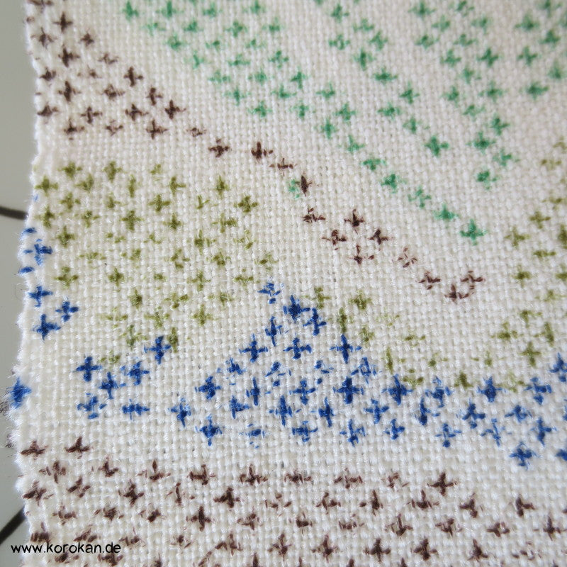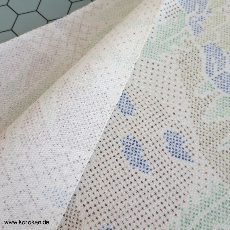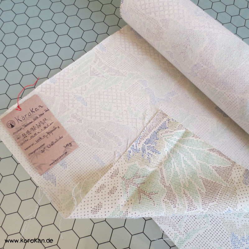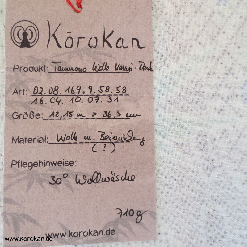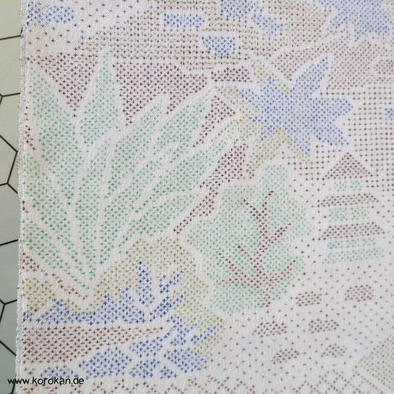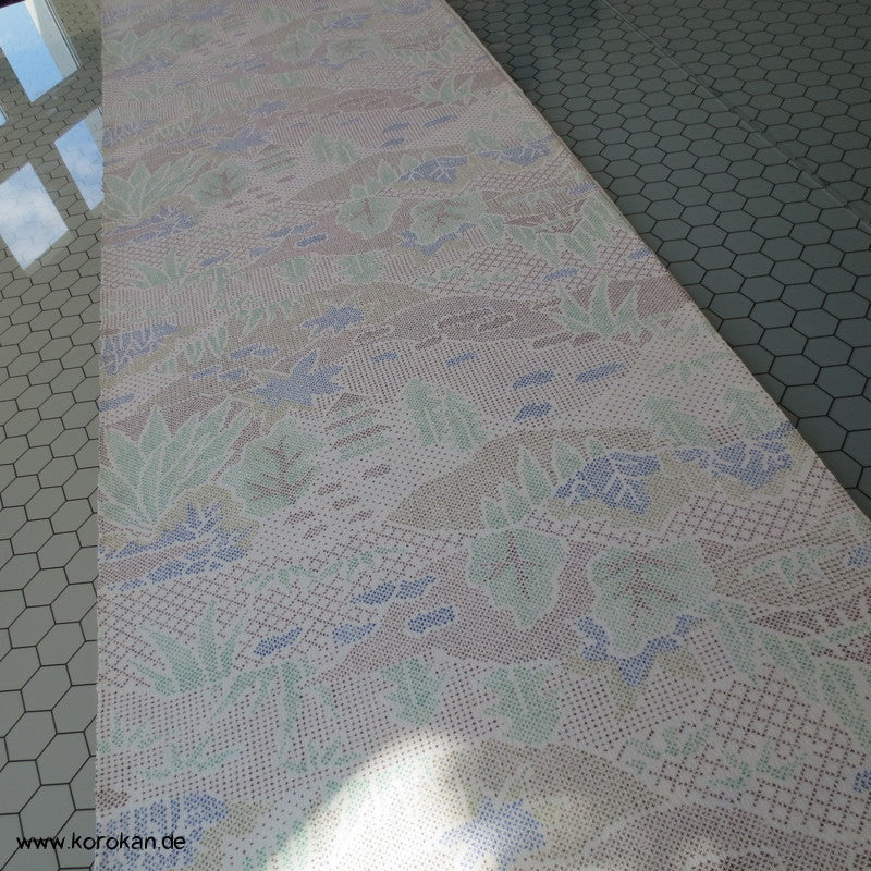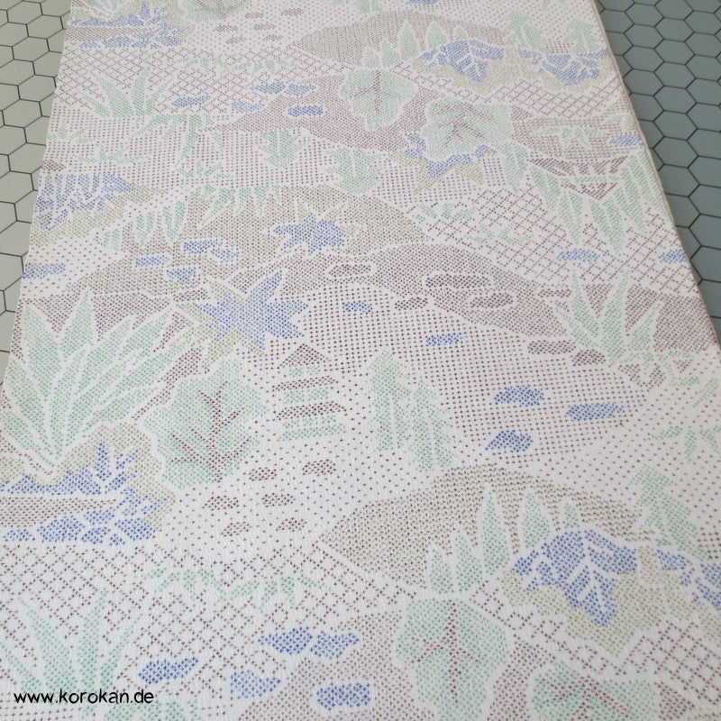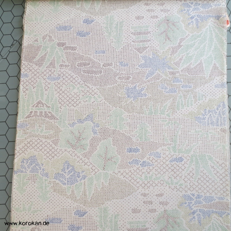 japanischer Vintage unbenutzter Wolle Crepe Georgette Kimono Stoffrolle, Berge Hügel mit grün blau grau in hell