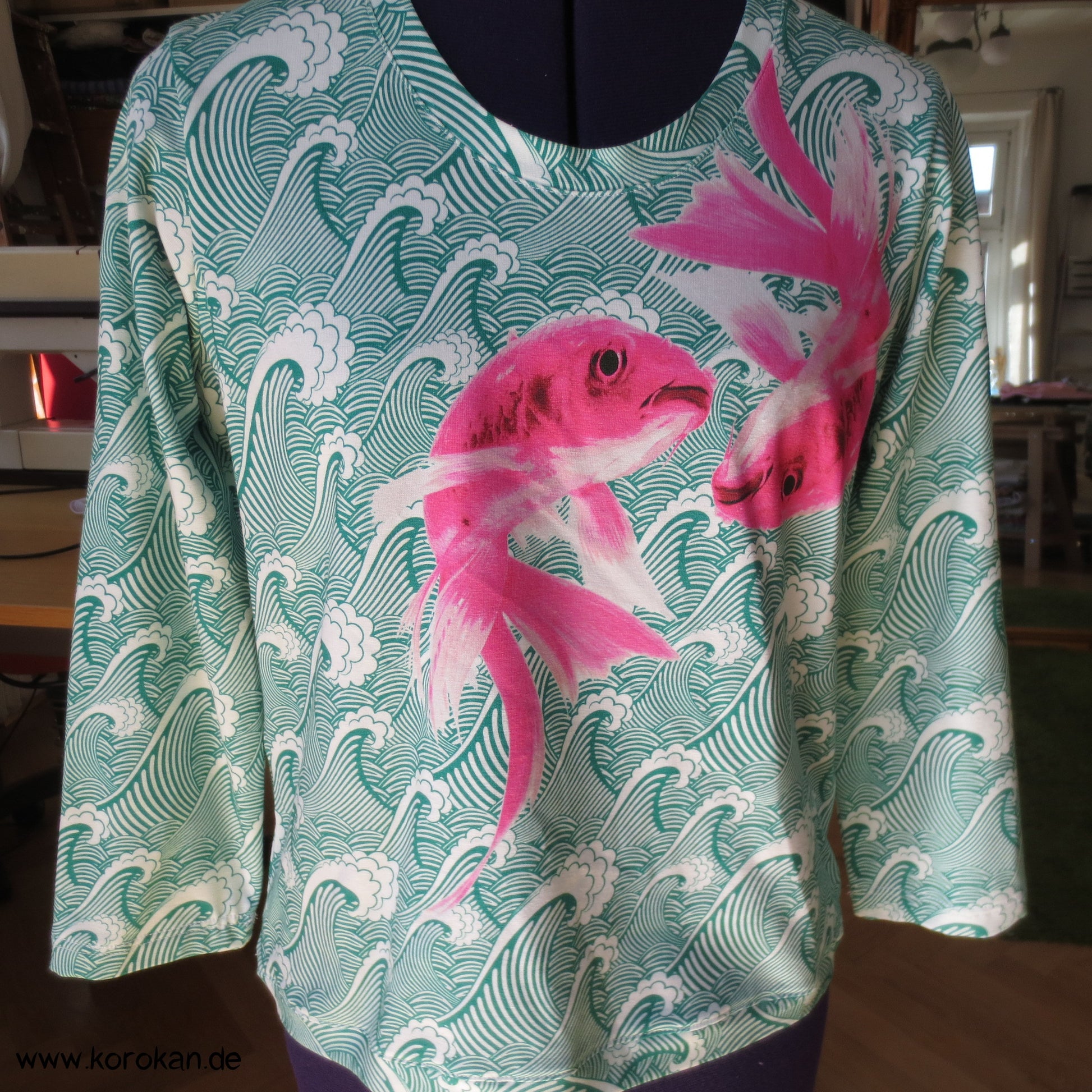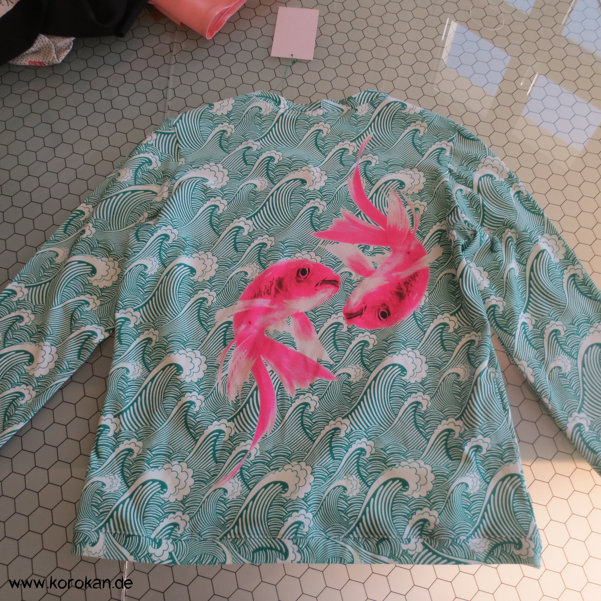 Langarm Koi T Shirt, Baumwolle mit Elasthan