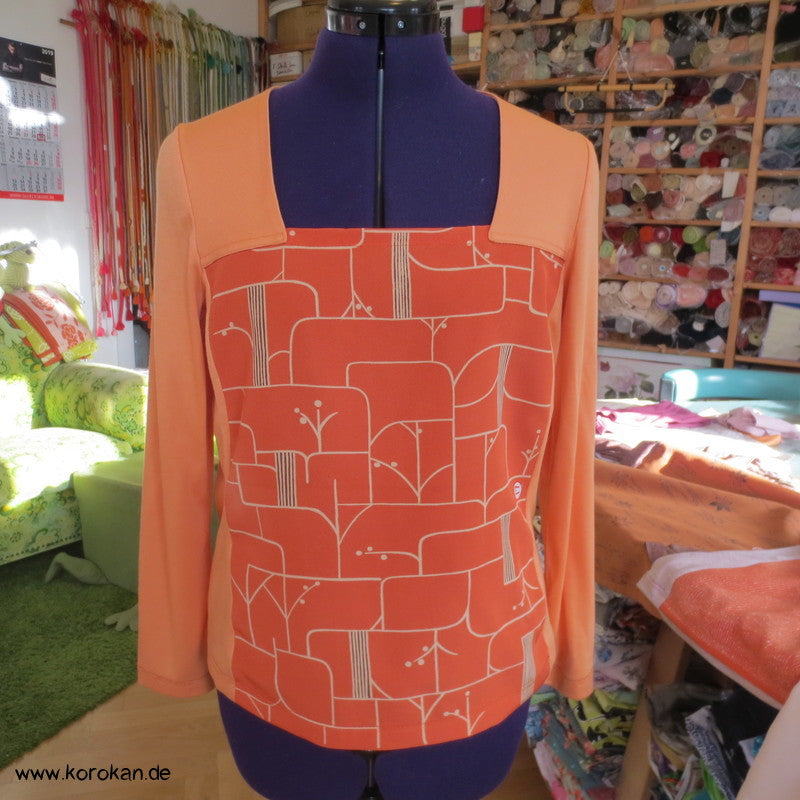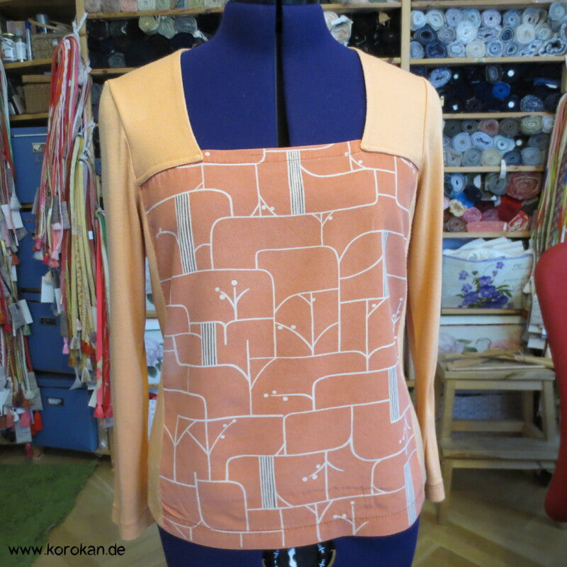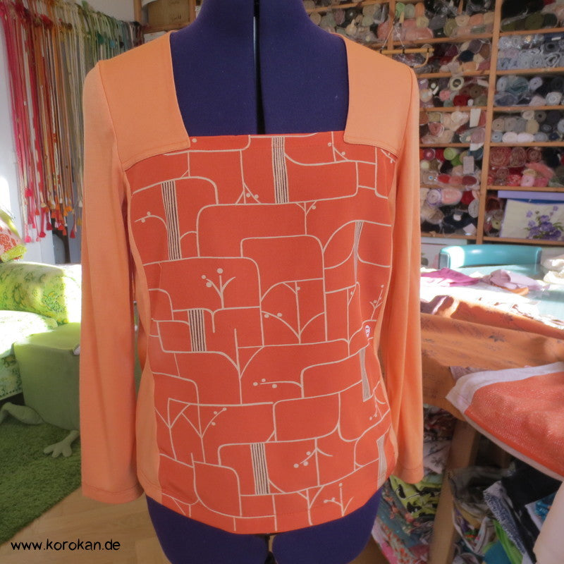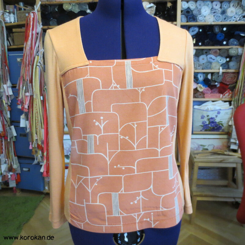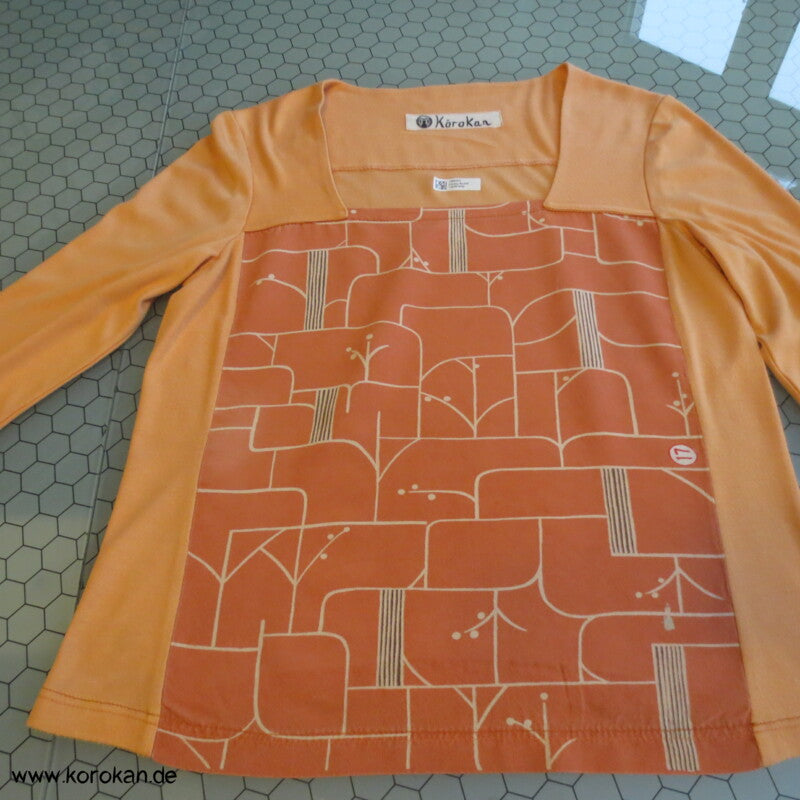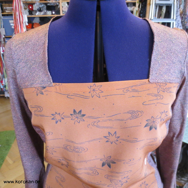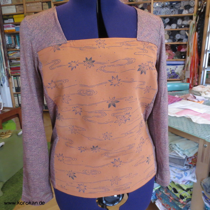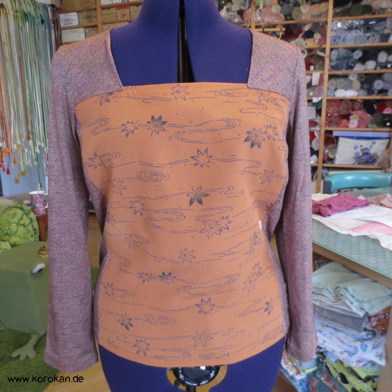 Test Vintage Panelshirt aus einem Kimonoseiden Stoffrest Seidencrepe abstrakt kombiniert mit Viscosejersey