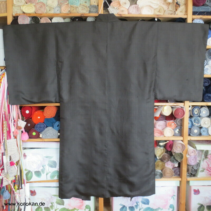 Vintage japanische Männer Haori aus schwarz - beige feiner Kasuri garngefärbter karierte Tsumugi Seide mit gestreiftem Seiden Futter