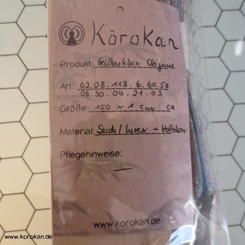 Vintage unbenutzter Obijime lila silber mit blau in Original Holzbox