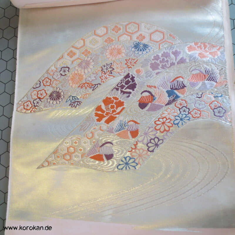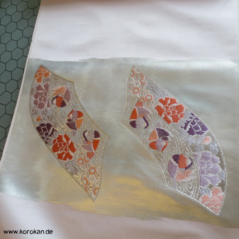 Mandarinenten rosa Nagoya Obi - Nishijin - Seiden Brokat
