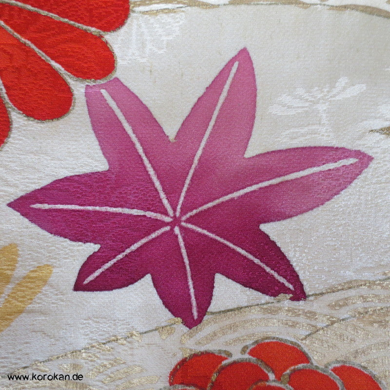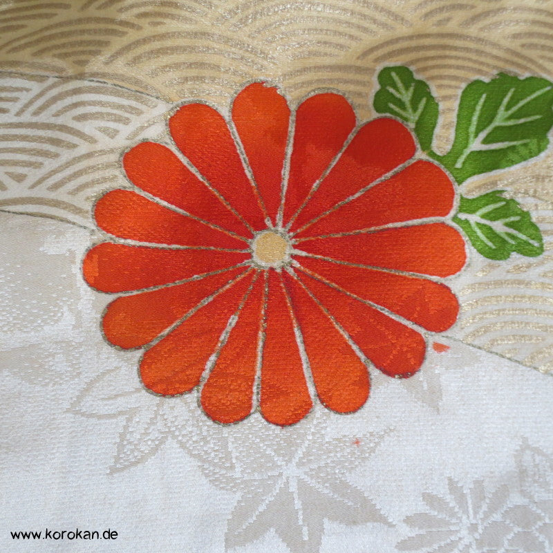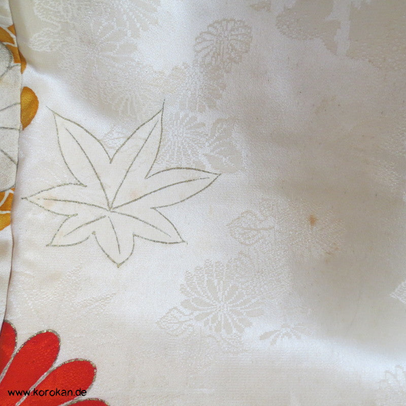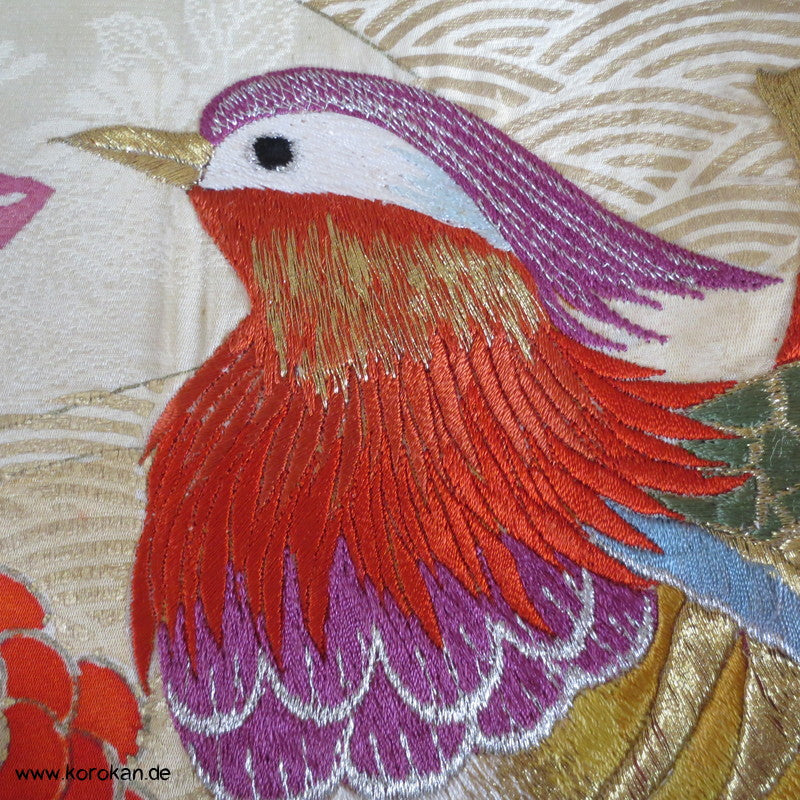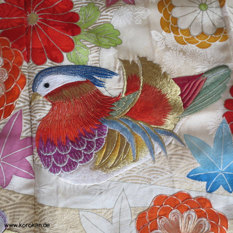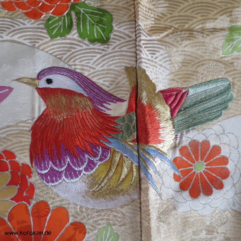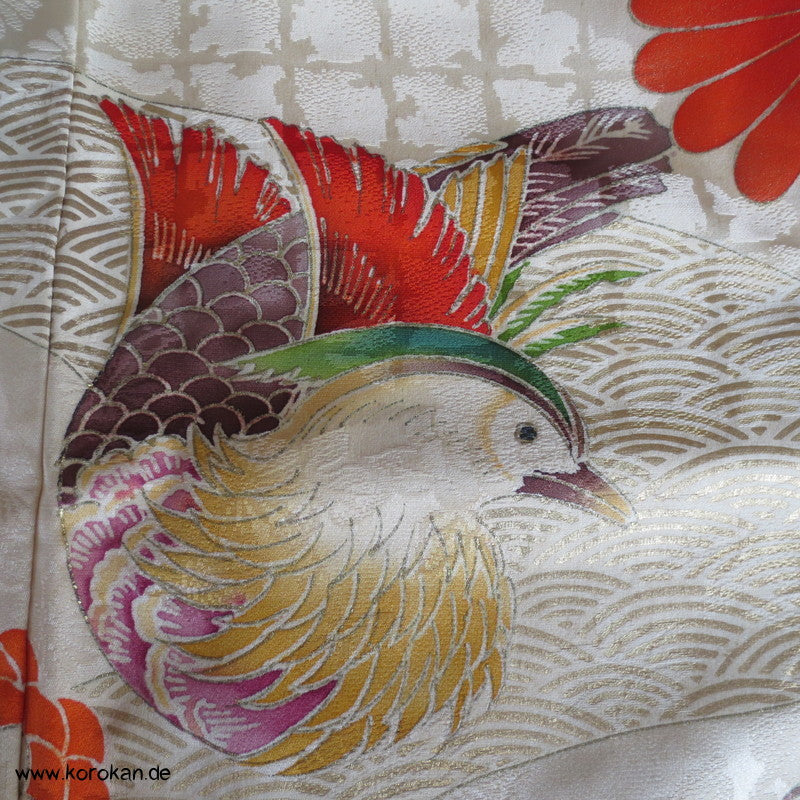 Mandarinenten, teilweise bestickter Seidendamast Homongi Kimono