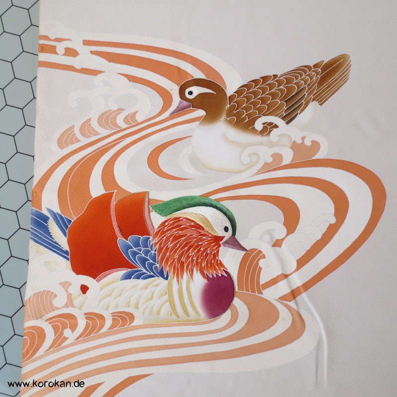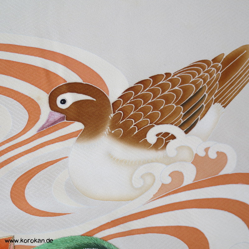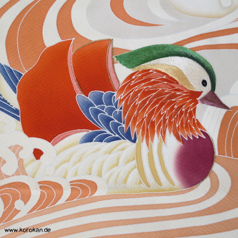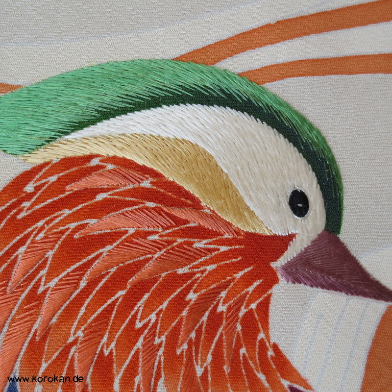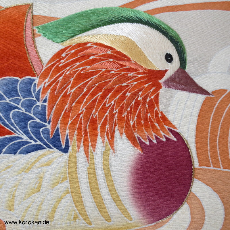 Mandarinentenpaar auf Wellen Tanmono, Teilstickerei