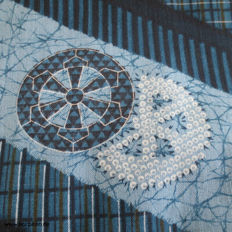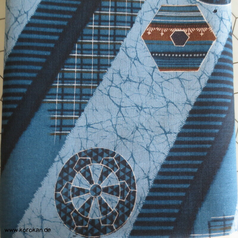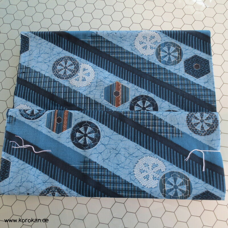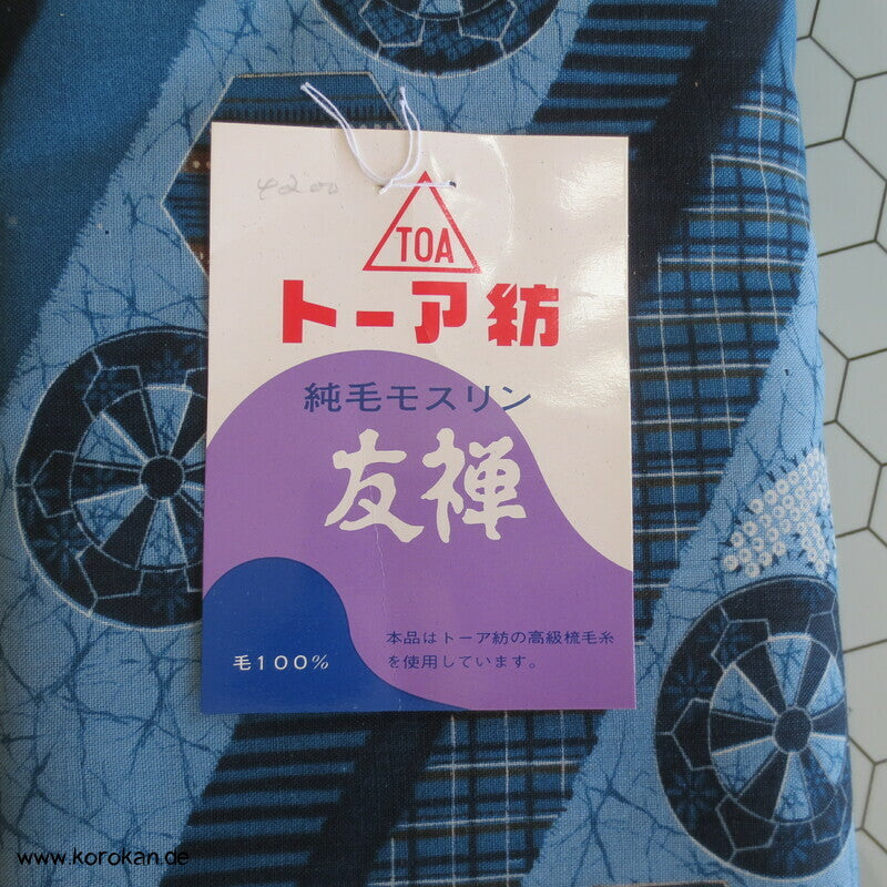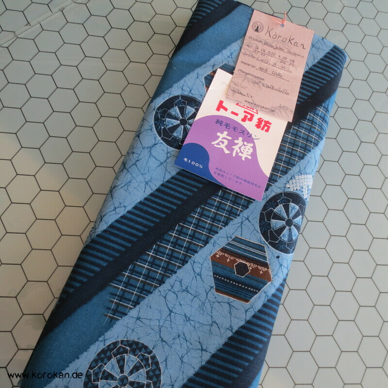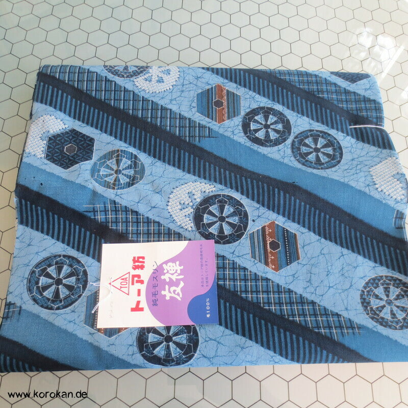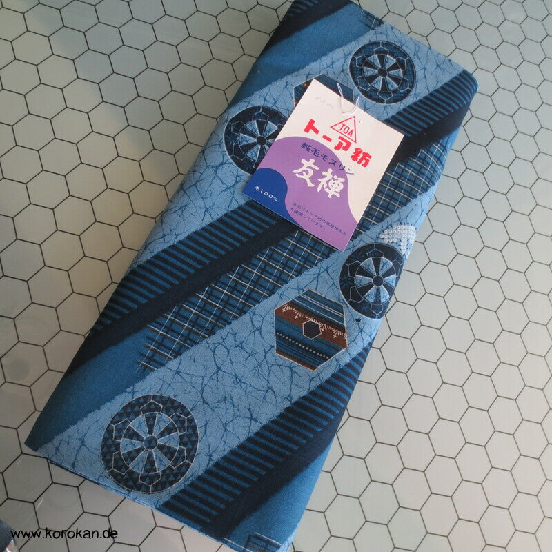 Vintage unbenutzte originalgeheftete Stoffrolle Tanmono feiner weicher Wollmuslin mit diagonalen Streifen, und Symbolen... für Juban Unter Kimono