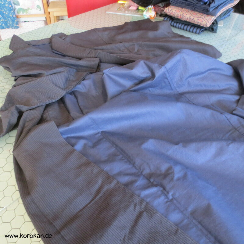 Männer Kimono anthrazit grau fein gestreifte Seide