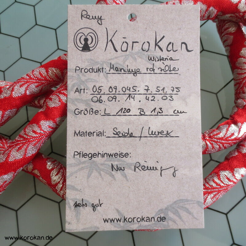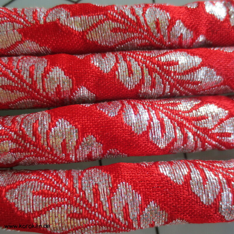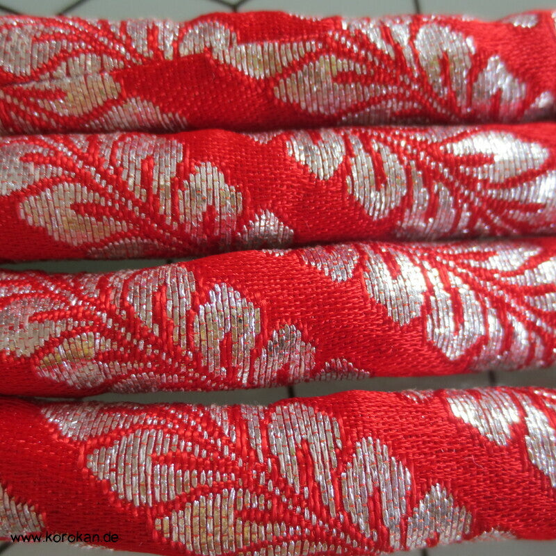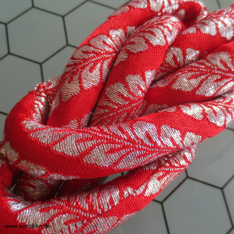 Marukuge Band, silberne Wisteria auf hellroter Seide