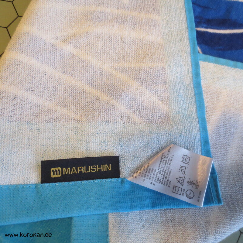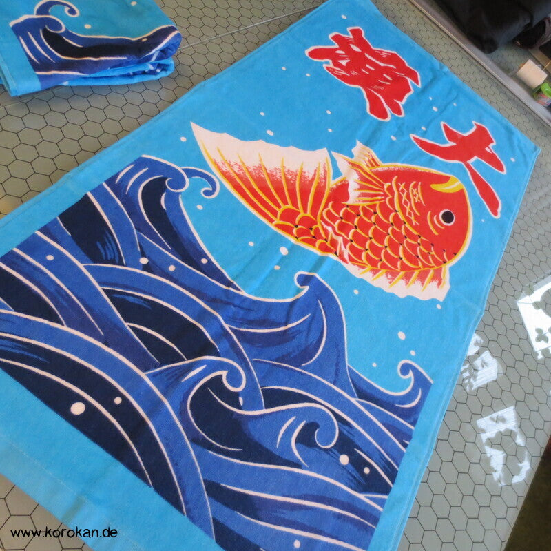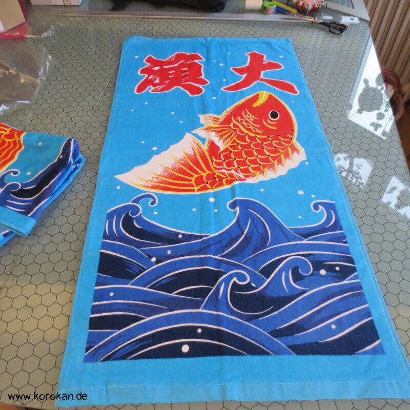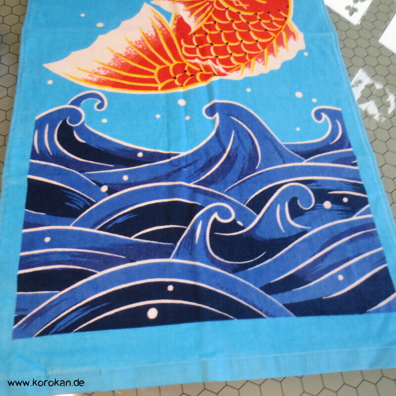 Marushin japanisches Baumwollfrottee Handtuch mit Goldbrasse über Wellen - auch als Tenugui -