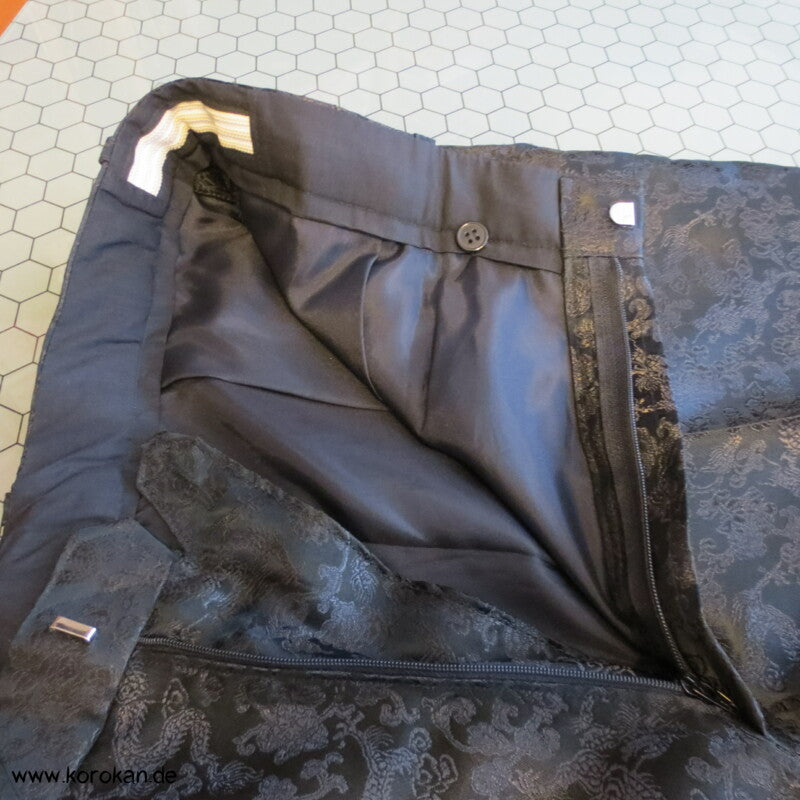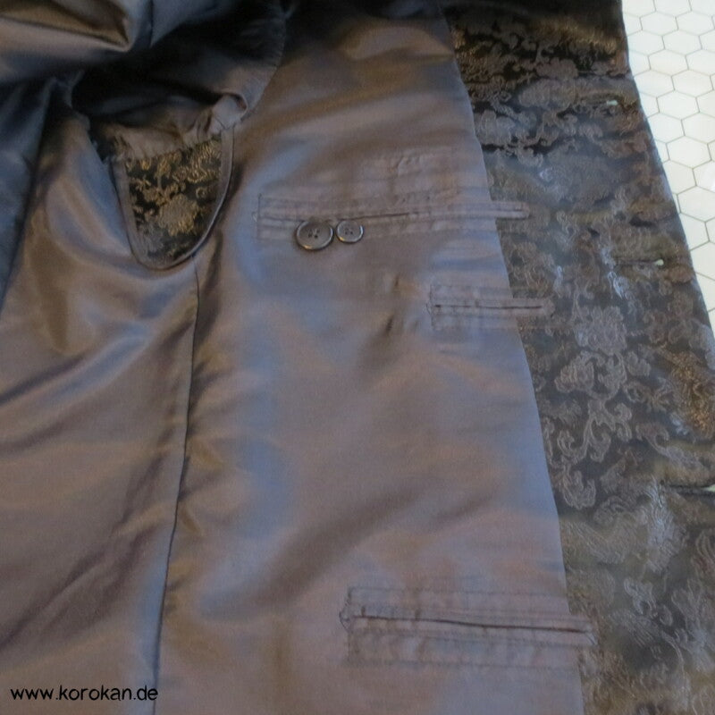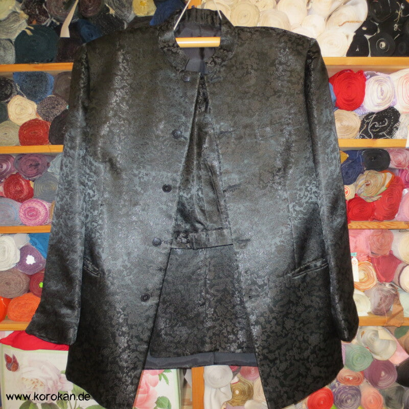 maßangefertigter Herrenanzug schwarze chinesische Drachenseide, ca. Gr. 52