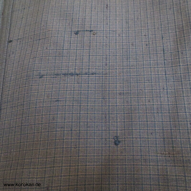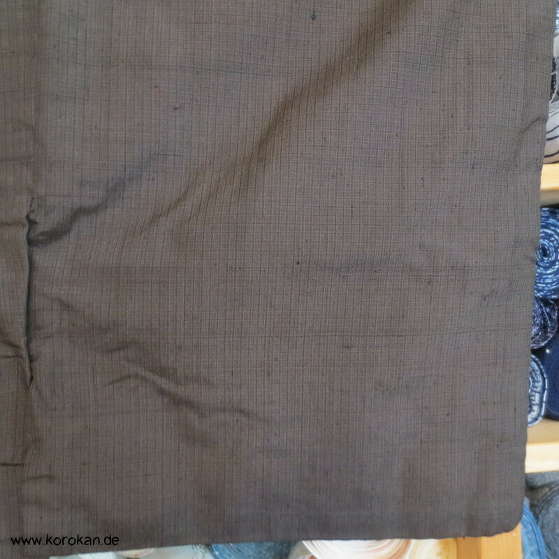 Vintage Männer Tsumugi braun karierter Kimono, mit blauem Baumwoll Chintz Futter.