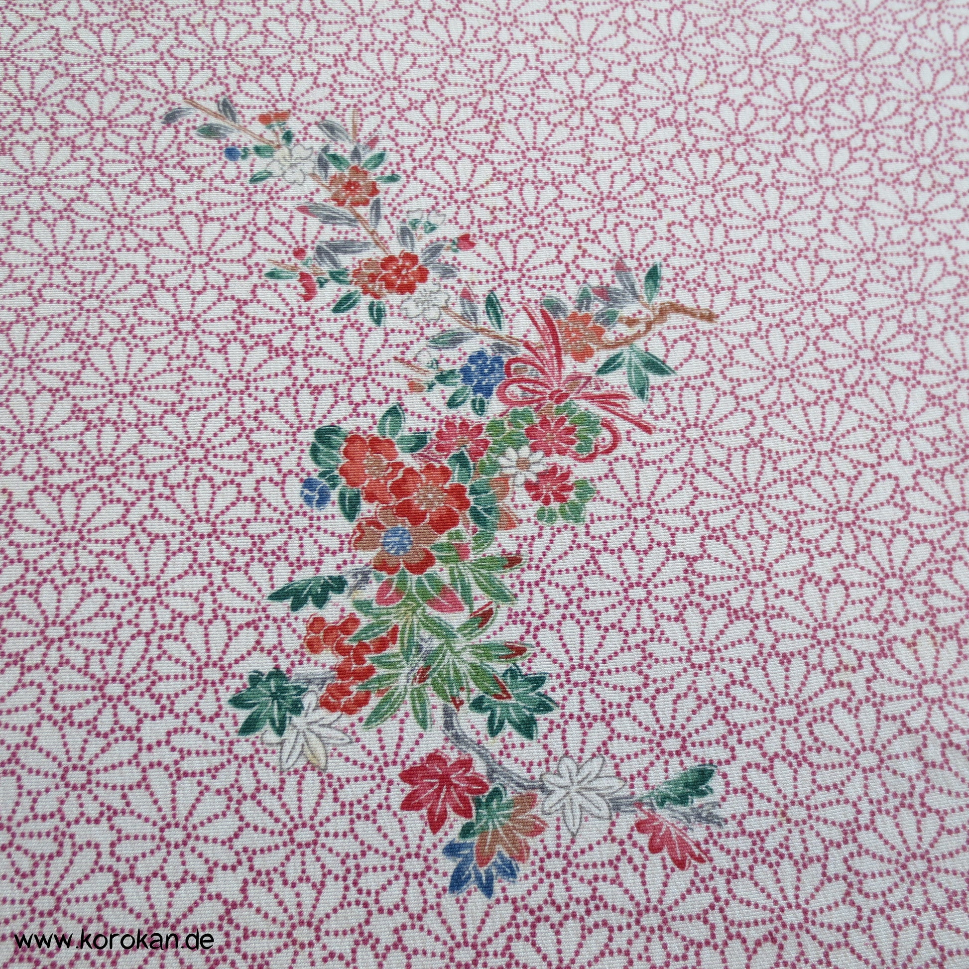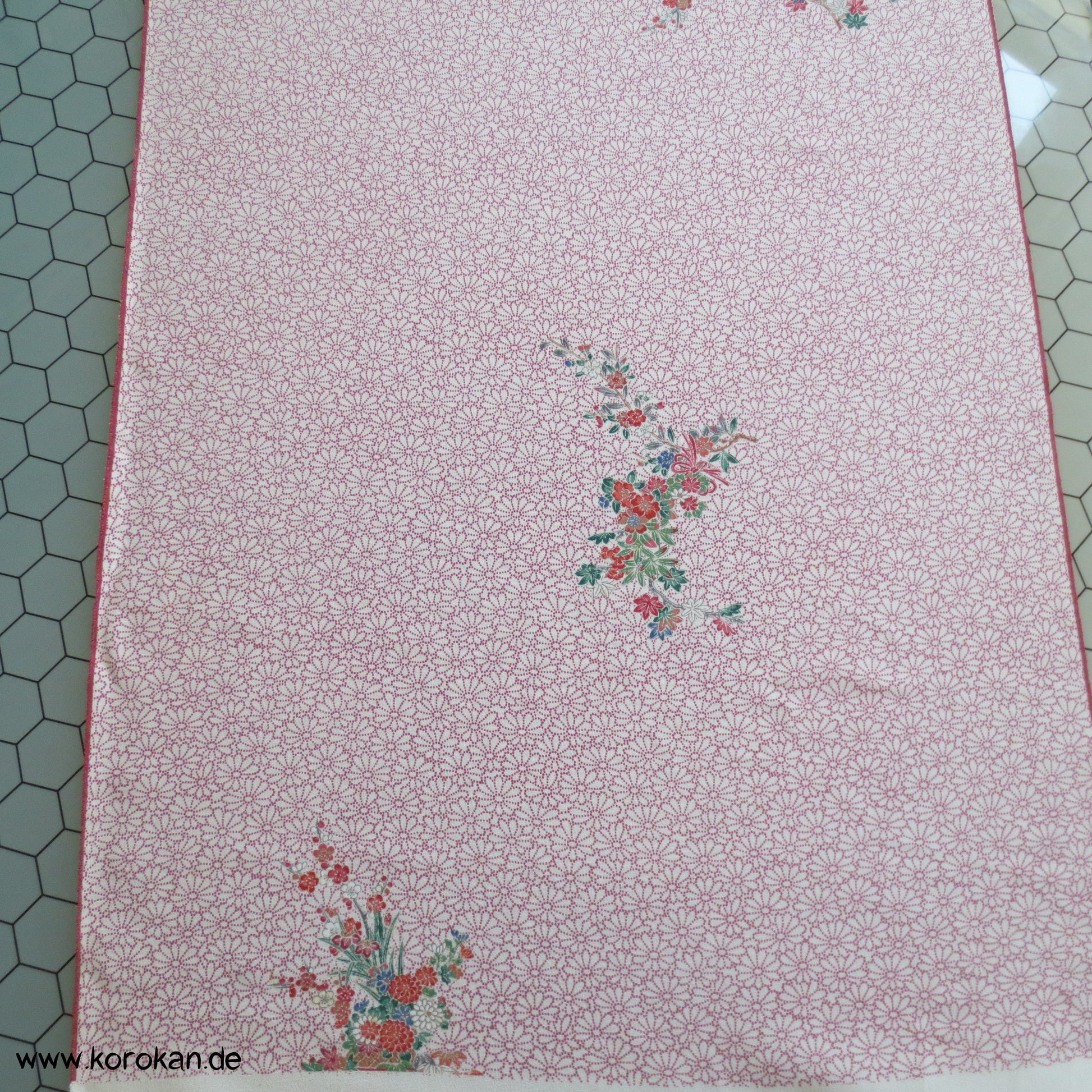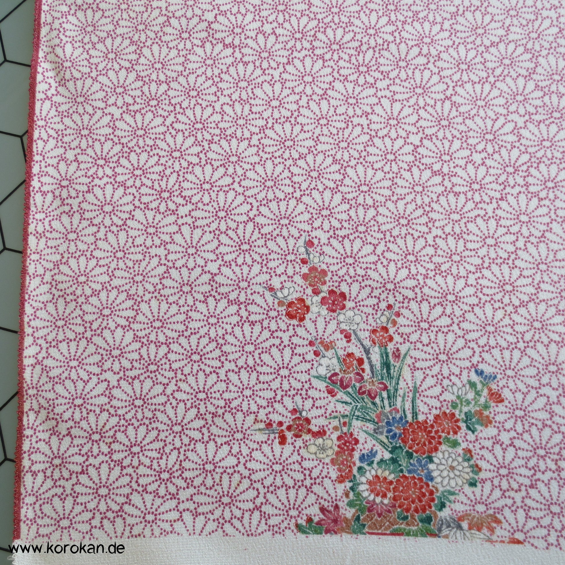 Vintage unbenutzte Tanmono Stoffrolle Seidencrepe ganz kleine Punkte Millefleur mit eingestreuten Blumensträußen