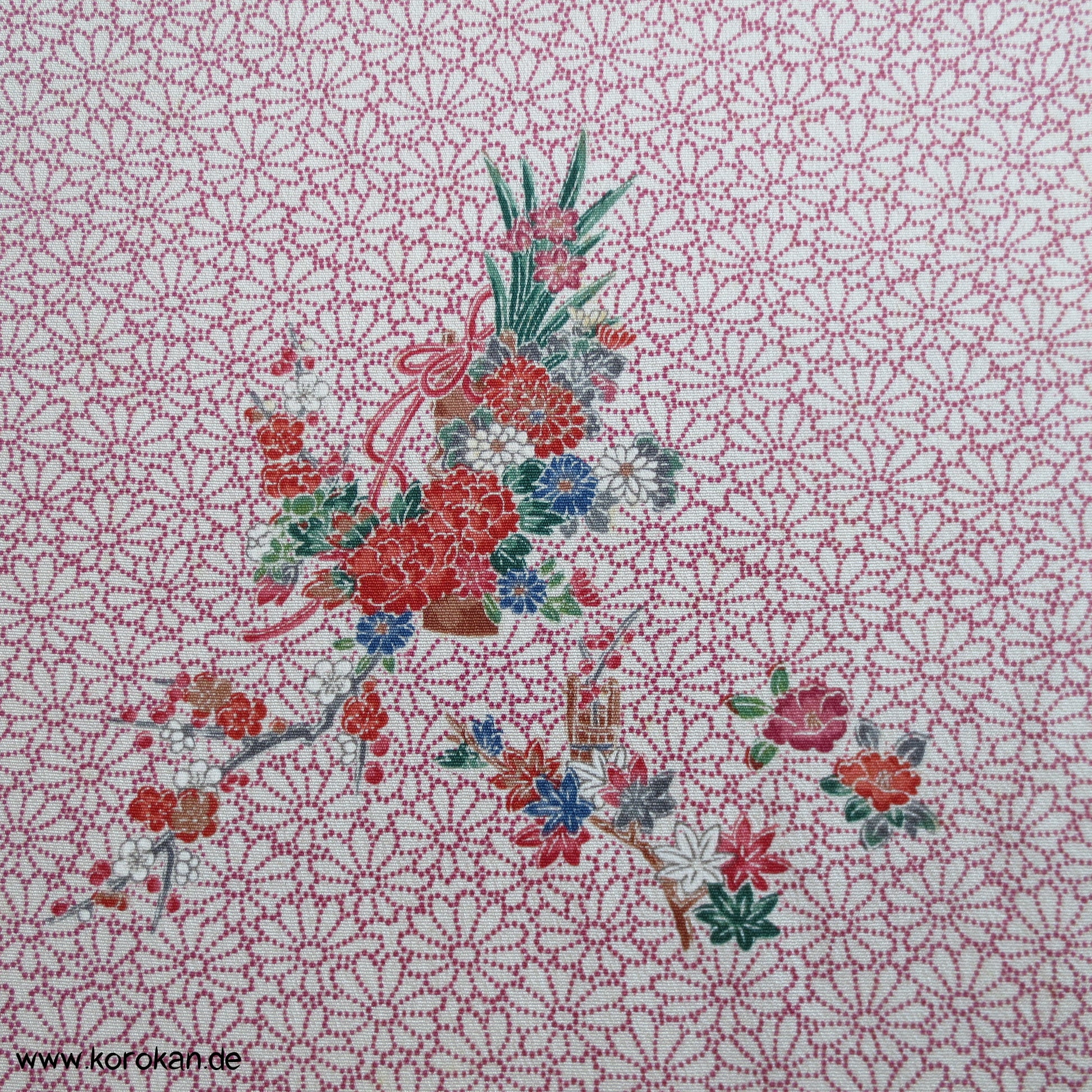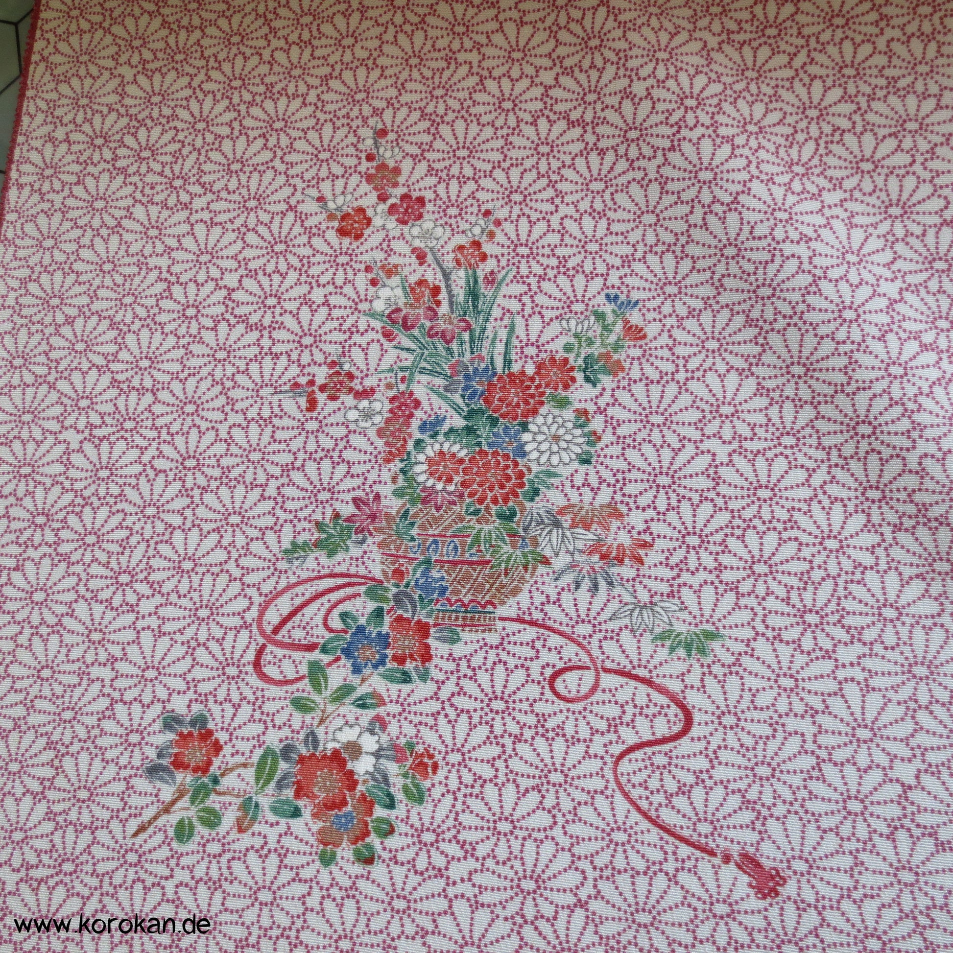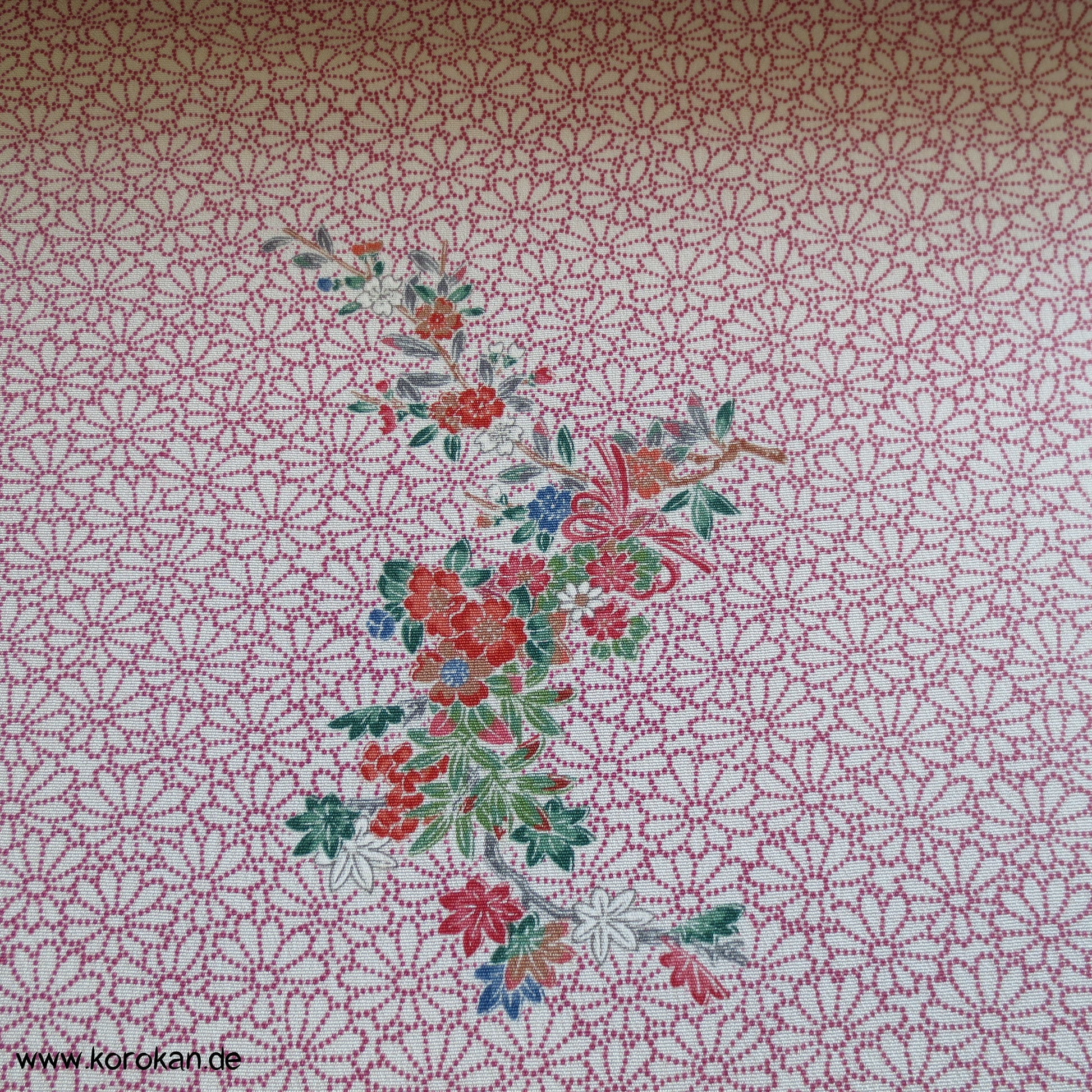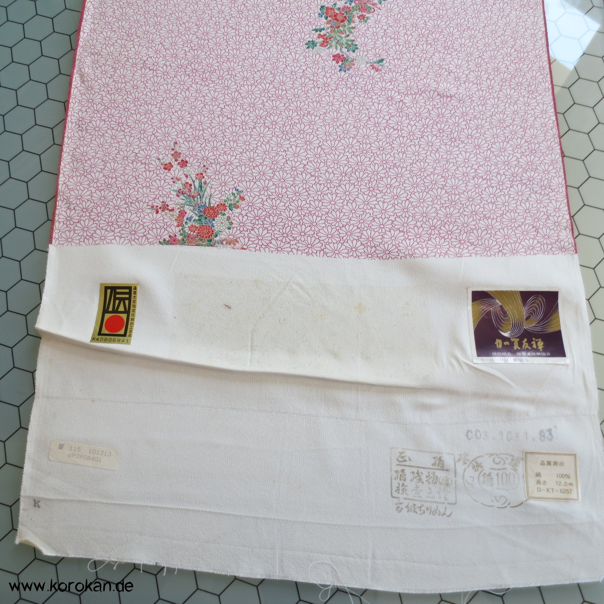 Vintage unbenutzte Tanmono Stoffrolle Seidencrepe ganz kleine Punkte Millefleur mit eingestreuten Blumensträußen